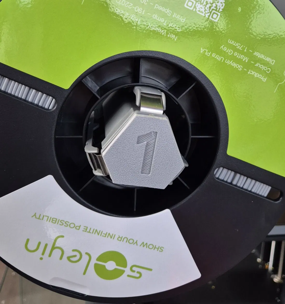 Biển Số Cuộn Dây Flashforge AD5X, có hình dạng vừa với đầu trục cuộn. Hữu ích để hiển thị số cuộn dây, số này sẽ bị che nếu cuộn dây đã được lắp. Chỉ cần gắn vào lỗ lục giác có sẵn ở đầu trục.