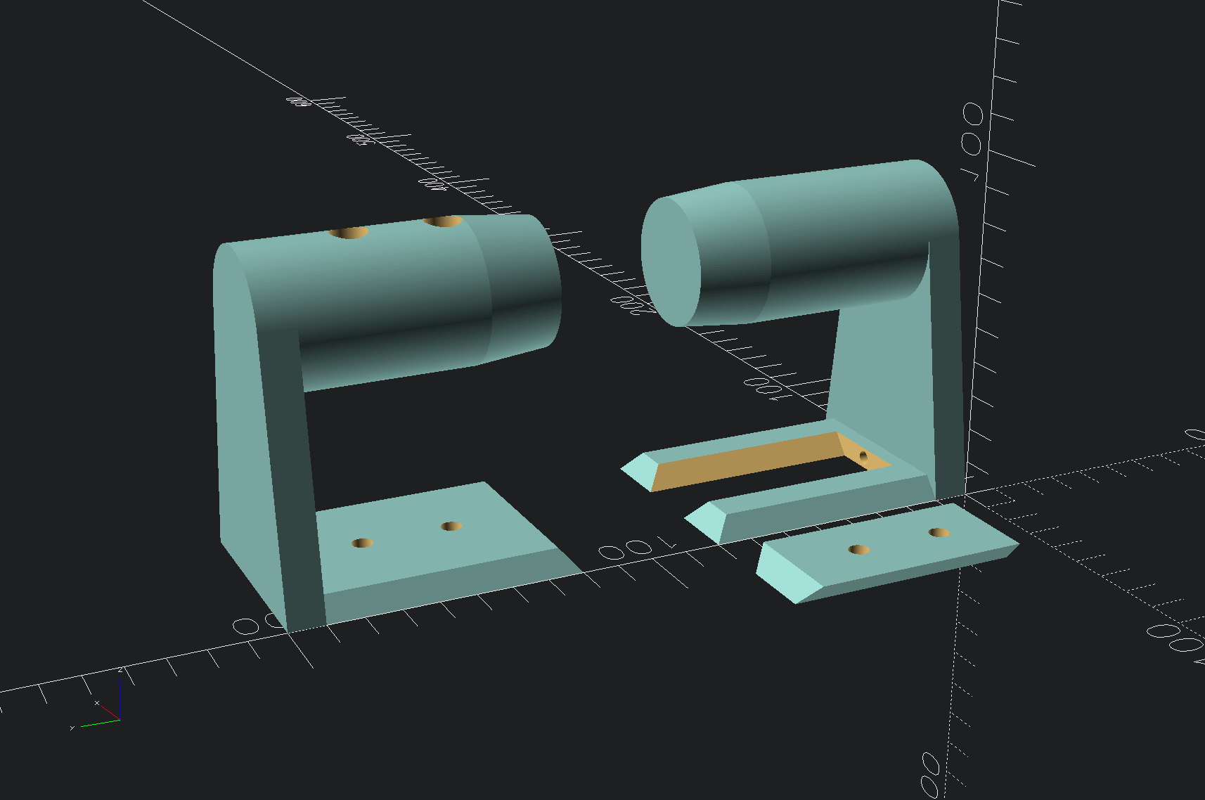 Tôi đã sử dụng nam châm thanh 4mm x 10mm được ép vào bản in. Nếu bạn có sẵn các loại nam châm khác, bạn có thể điều chỉnh các biến sau: mgd (đường kính nam châm có tính toán dung sai) + mgl (chiều dài nam châm có tính toán dung sai) và cũng có thể là mz (chiều cao đế gắn) nếu nam châm của bạn có đường kính lớn.