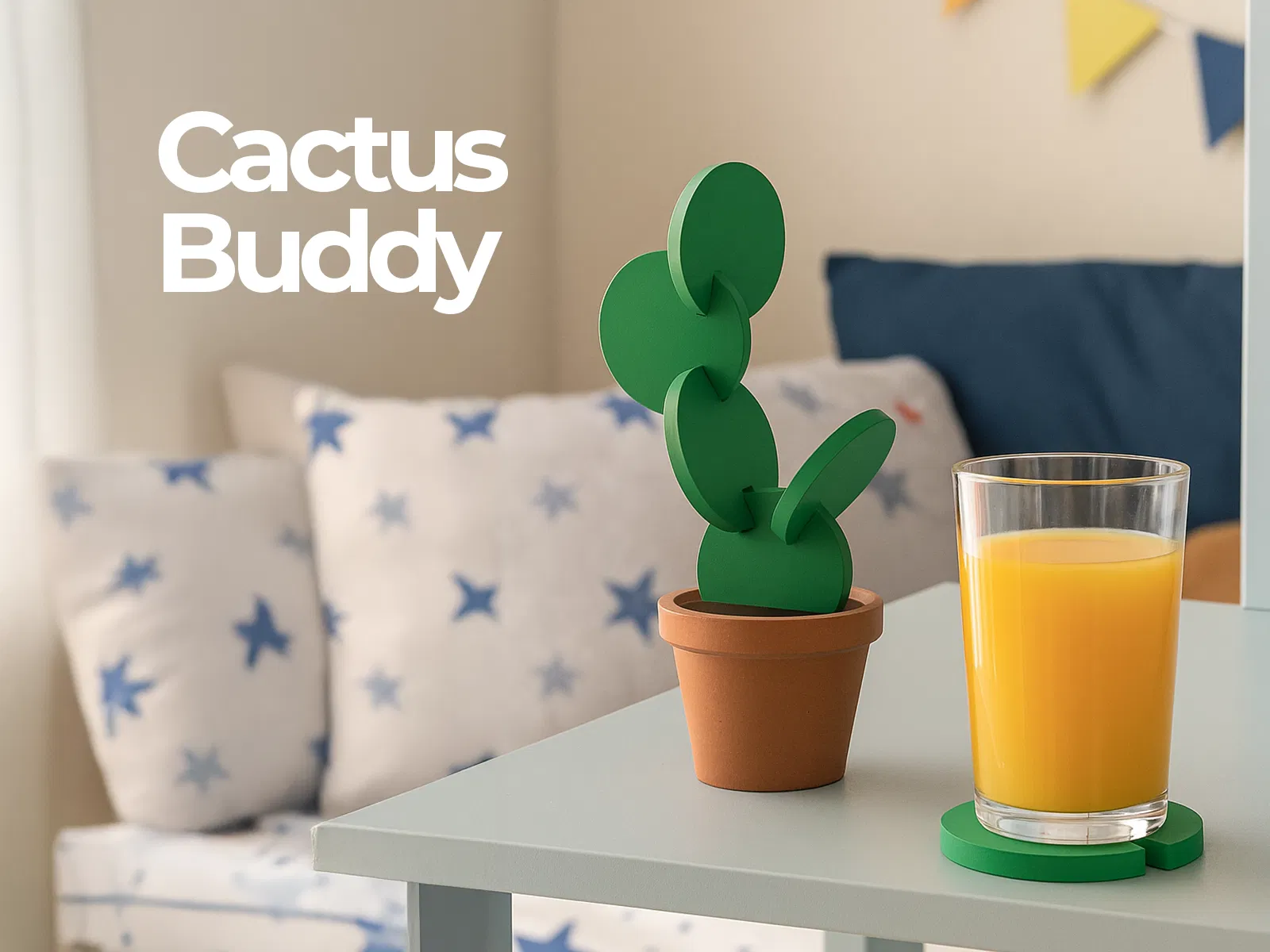 Cactus Buddy là chậu cây siêu cưng, mỗi "lá" là một đế lót ly. Sản phẩm này là món đồ trang trí vui nhộn, hoàn hảo cho phòng trẻ em, giúp giữ ly nước trái cây của bé luôn ổn định và bàn nhà bạn luôn sạch sẽ.