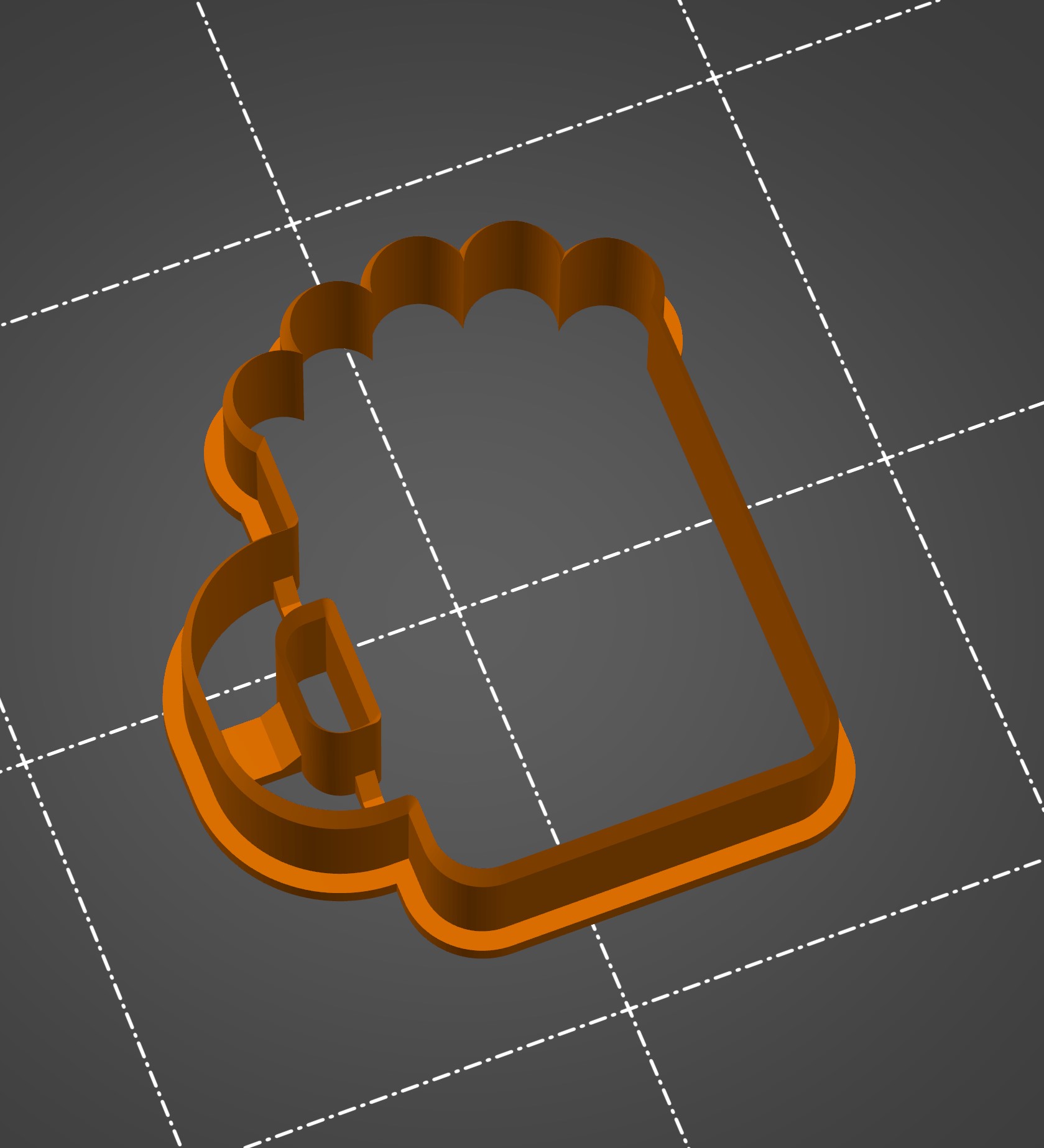 Dụng cụ cắt bánh gừng hình bia đơn giản. Kèm theo Gcode cho máy Mini+ với đầu phun 0,4mm, lớp dày 0,2mm dùng PLA, in trong 37 phút. Mẹo in: lớp cuối có thể thiếu, bạn có thể thêm thay đổi màu trong PrusaSlicer rồi dừng in. Bột có thể dính ở tay cầm, dùng muỗng đẩy ra.