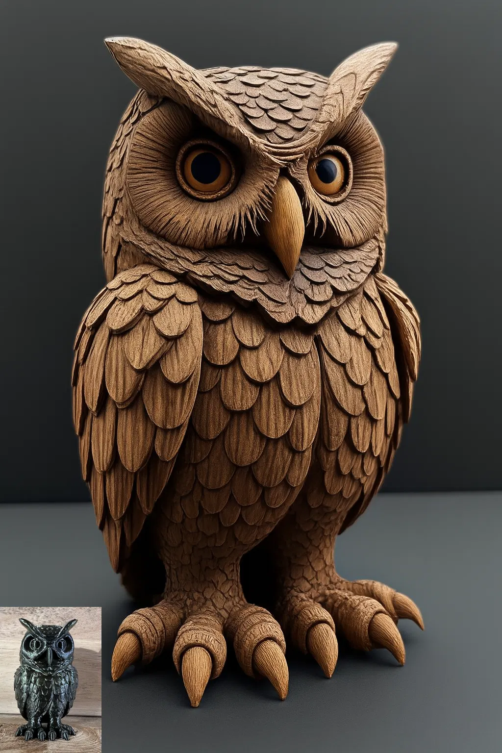 Một tượng điêu khắc hình con cú mèo được tạo bởi AI, hoàn hảo để trang trí. Mô hình này được in dễ dàng trên máy in 3D, ngay cả với các máy hơi cũ. Bản in nhỏ, chất lượng tốt, ảnh minh họa cho thấy khả năng in ấn.