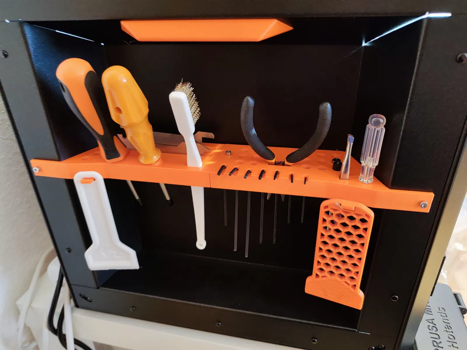 Giá đỡ dụng cụ đơn giản cho cạnh trái của Core One, không cần lót cả cạnh. Có thể gắn bằng ốc M3 x 8 và tùy chọn nam châm 10mm x 2mm để chống rung lắc. Tôi không cho phép sử dụng thương mại.