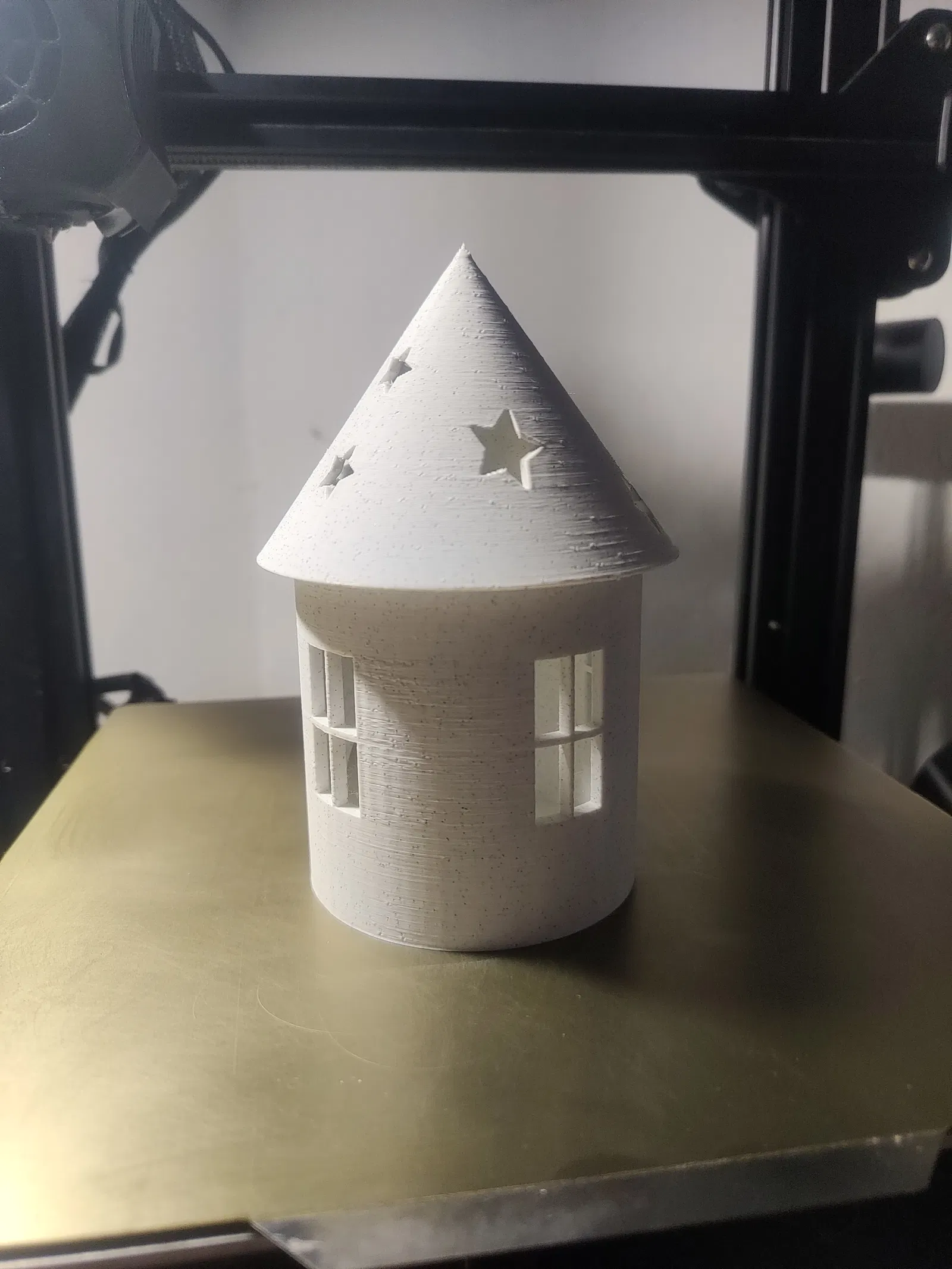Mô hình Ngôi nhà Giáng sinh, lấy cảm hứng từ chân nến thật. Chỉ dùng với nến LED. In kèm giá đỡ, có thêm mô hình với lỗ to hơn để vừa nến lớn hơn.