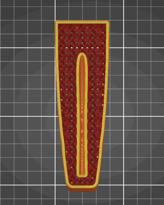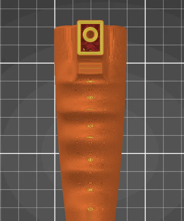 Khi in, tui khuyên nên dùng 4-5 lớp vỏ ngoài để tăng độ ổn định. Tui cũng đã thêm một lỗ hình chữ L vào mô hình, nhờ sử dụng các lớp vỏ ngoài này cũng tăng thêm độ ổn định và cứng cáp. Tui có thêm vài ảnh chụp màn hình slicer để cho rõ hơn.