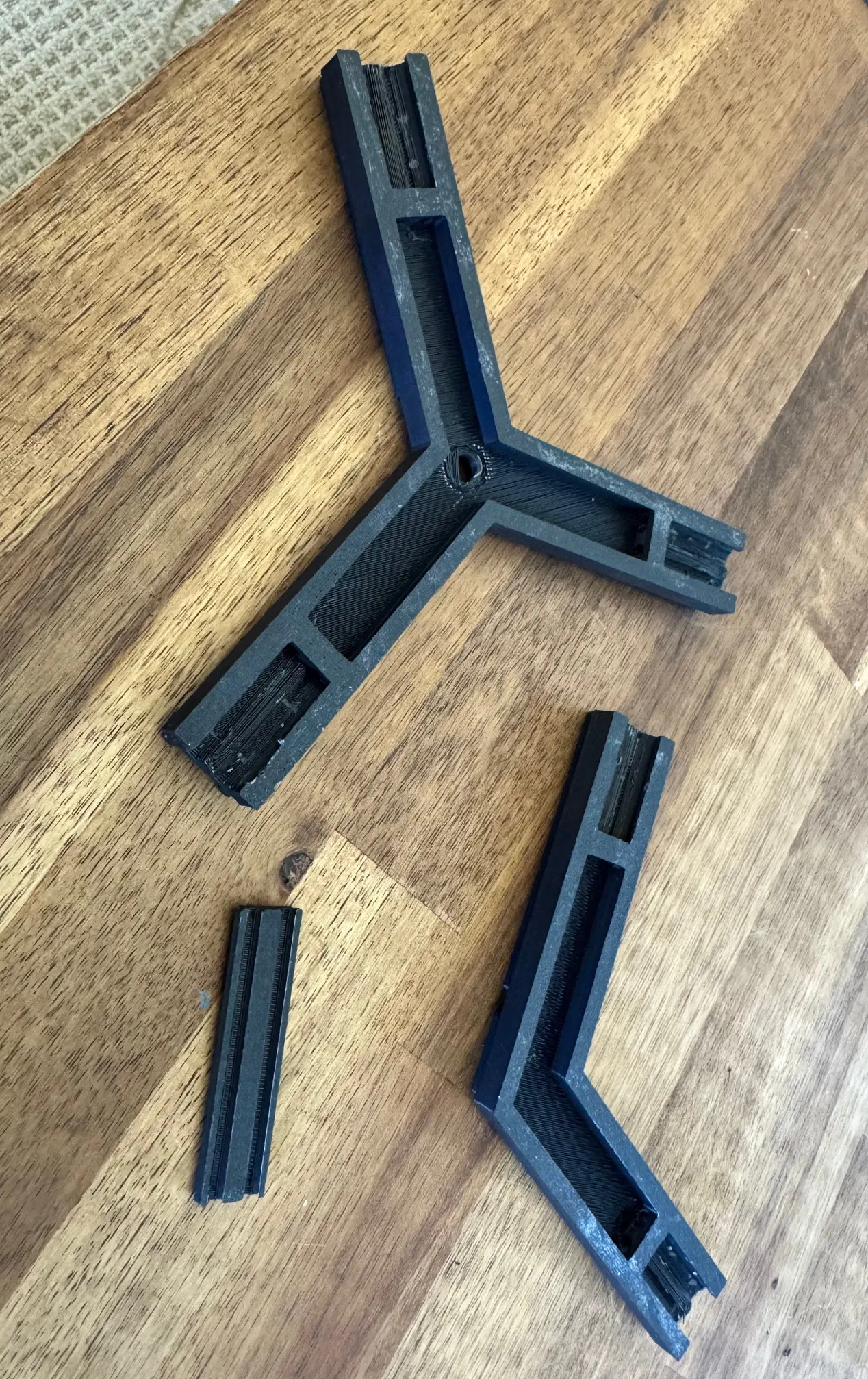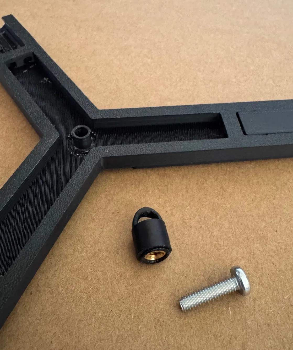 Tôi đã sử dụng PolyLite màu đen ASA cho các bộ phận khung, mặc dù tôi chắc chắn rằng ABS, PETG hoặc tương tự cũng sẽ ổn. PLA có thể không đủ bền.