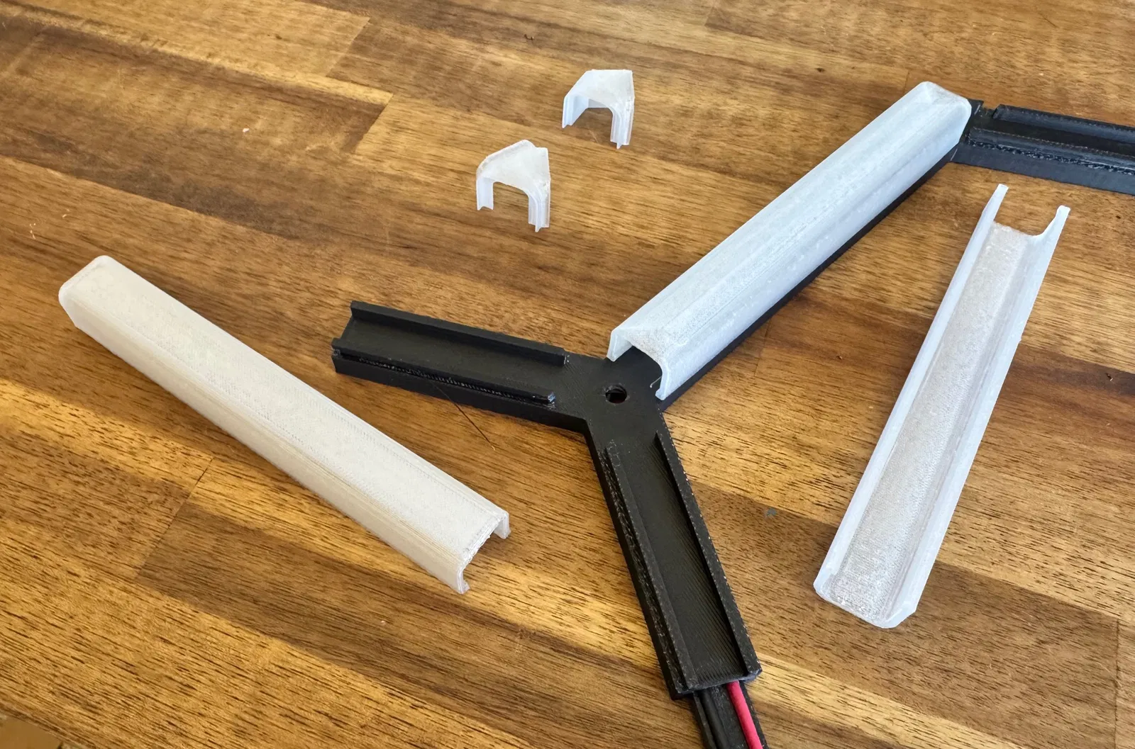 • Hai bộ phận khung chính cần được in với giá đỡ. Tuy nhiên, thiết kế đảm bảo rằng giá đỡ không ảnh hưởng đến các bộ phận nhìn thấy được của khung, và chúng nên được gỡ bỏ khá dễ dàng.