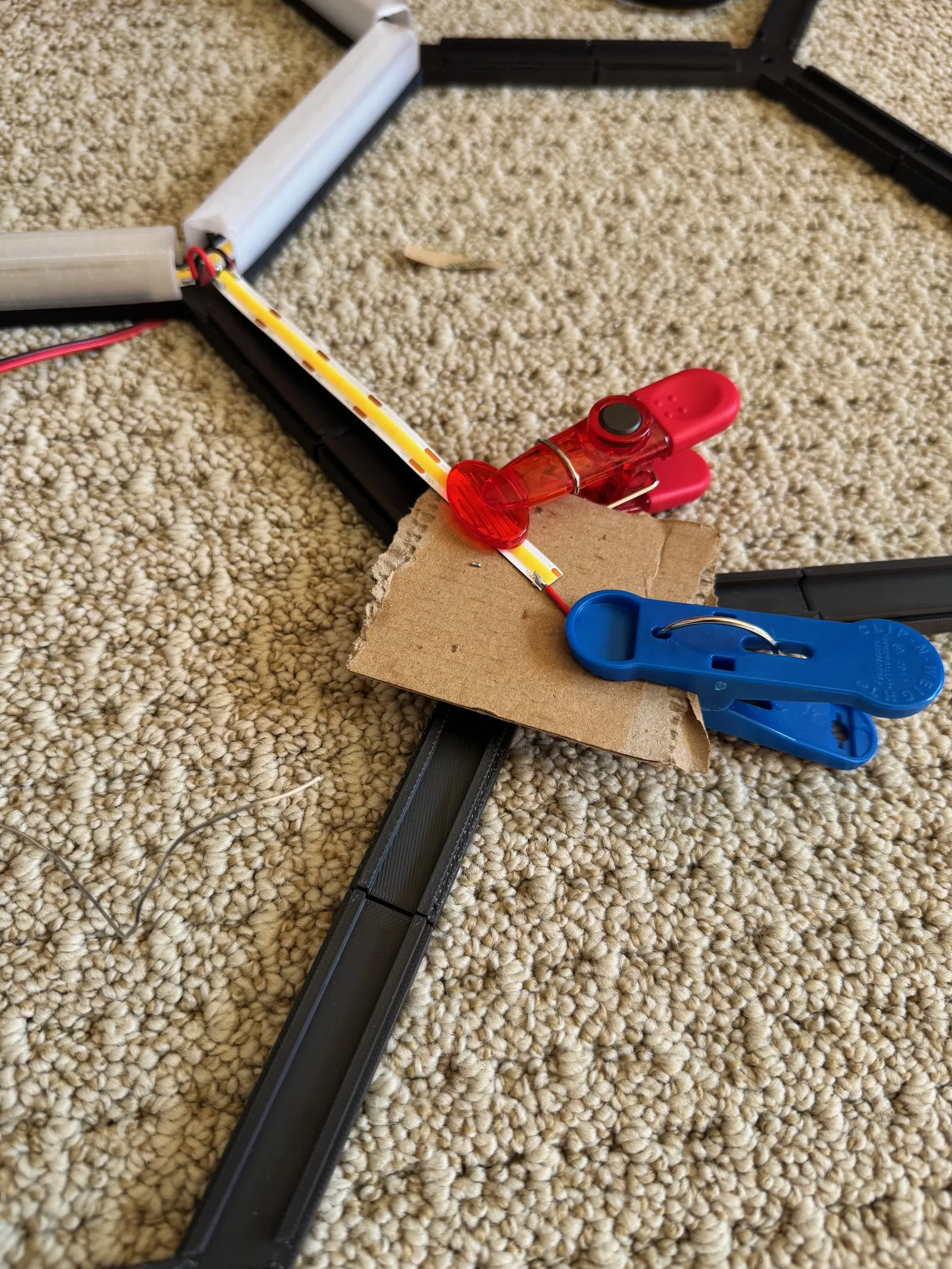 Có rất nhiều công việc in ấn và hàn. Cá nhân tôi không khuyên bạn nên sử dụng kẹp để kết nối các dải LED, vì theo kinh nghiệm của tôi, chúng tạo ra các kết nối kém tin cậy hơn nhiều so với hàn.