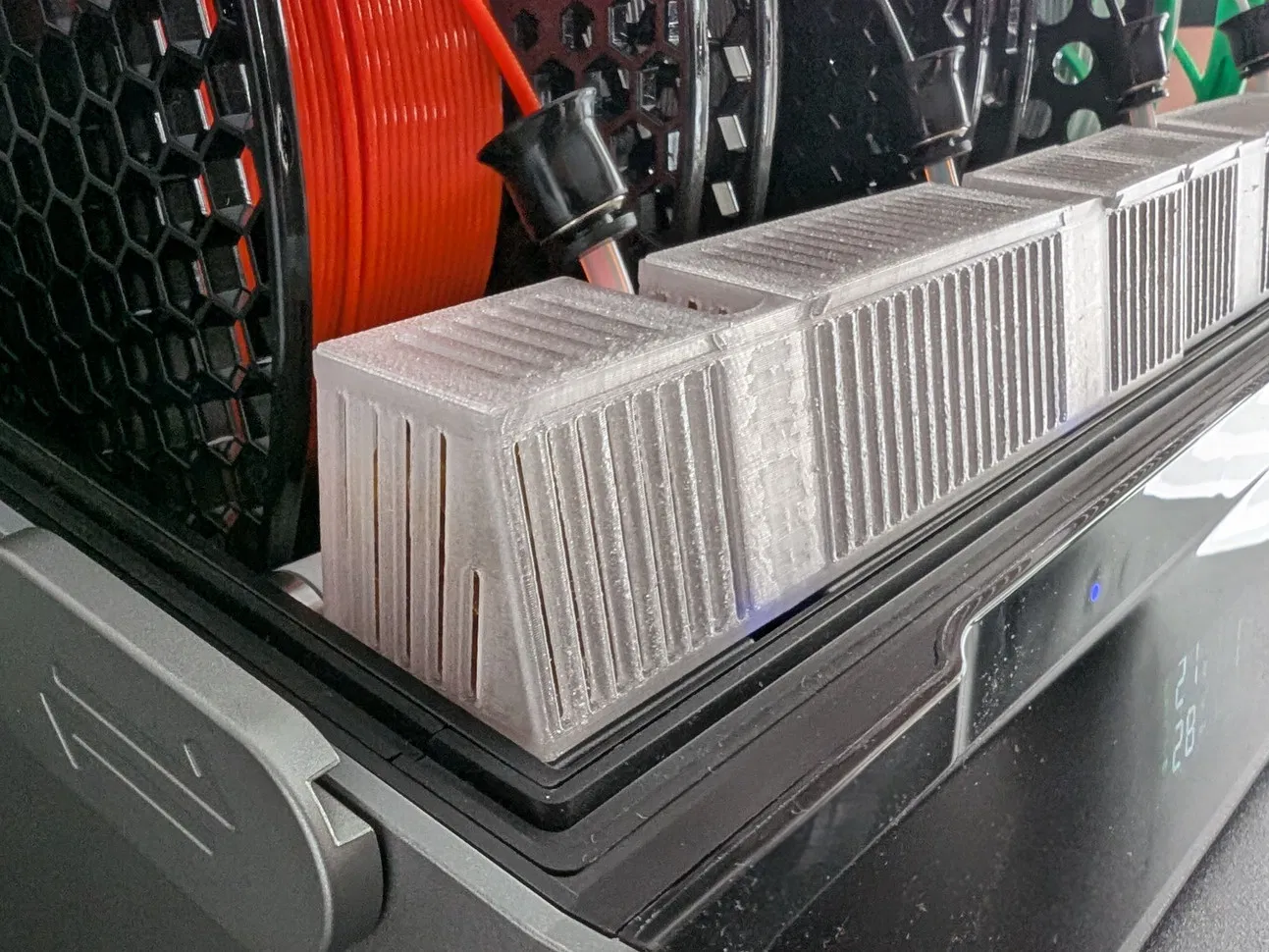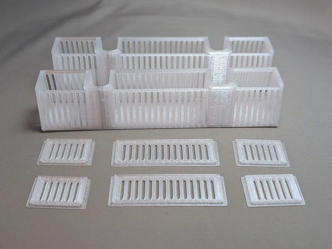 Hộp đựng chất hút ẩm silica gel gắn phía trước của CFS. Gắn vừa vặn vào mặt trước của CFS của bạn. Chứa được khoảng 120 gram chất hút ẩm và được in làm 2 phần cho dễ quản lý. Nắp trượt ra vào để dễ dàng cho chất hút ẩm vào. In không cần hỗ trợ.