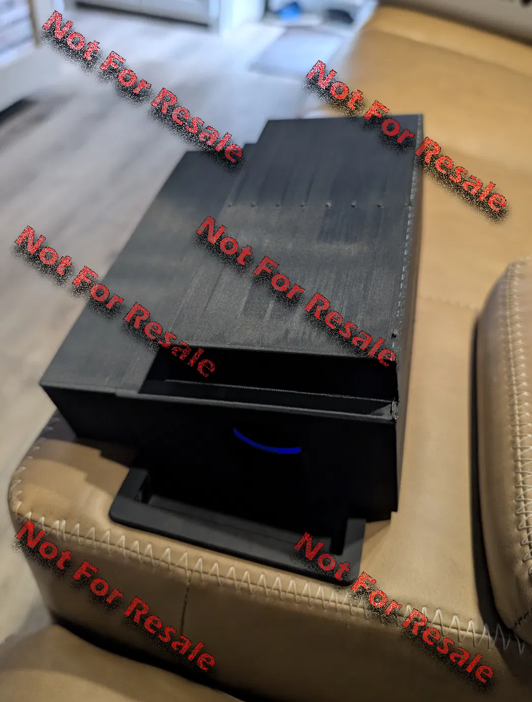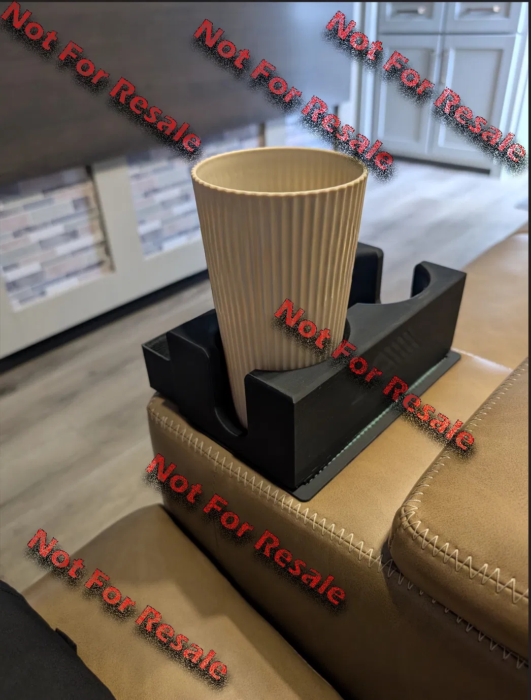 Cái kệ cốc này gắn vô chỗ sạc không dây trên ghế sofa, để được 2 cốc và có khe cắm remote luôn. Thiết kế hơi khít để khỏi rung lắc, có miếng chống trượt đi kèm. In bằng PLA với infill 8% Gyroid, dày 0.25mm, nozzle 0.4mm. In nghiêng 45 độ để khỏi cần support.