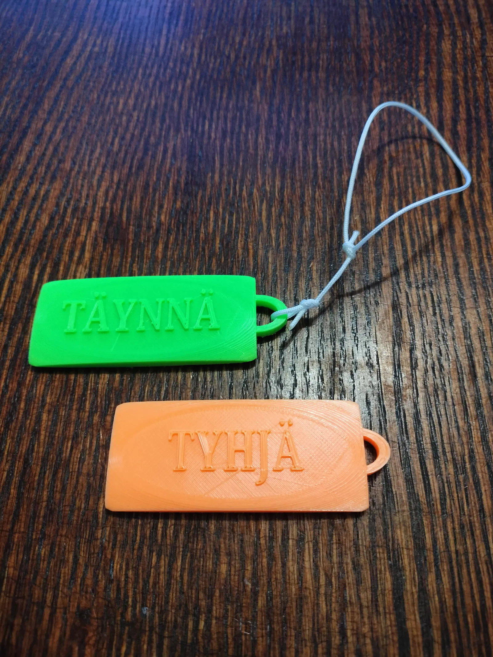 Biển báo "Kyltti" là một mô hình 3D độc đáo, có thể treo và đi kèm với các tùy chọn chữ "FULL" (Đầy) hoặc "EMPTY" (Rỗng). Mô hình này rất lý tưởng để trang trí hoặc đánh dấu bình khí lặn của bạn, giúp phân biệt rõ ràng giữa bình đầy và bình rỗng.