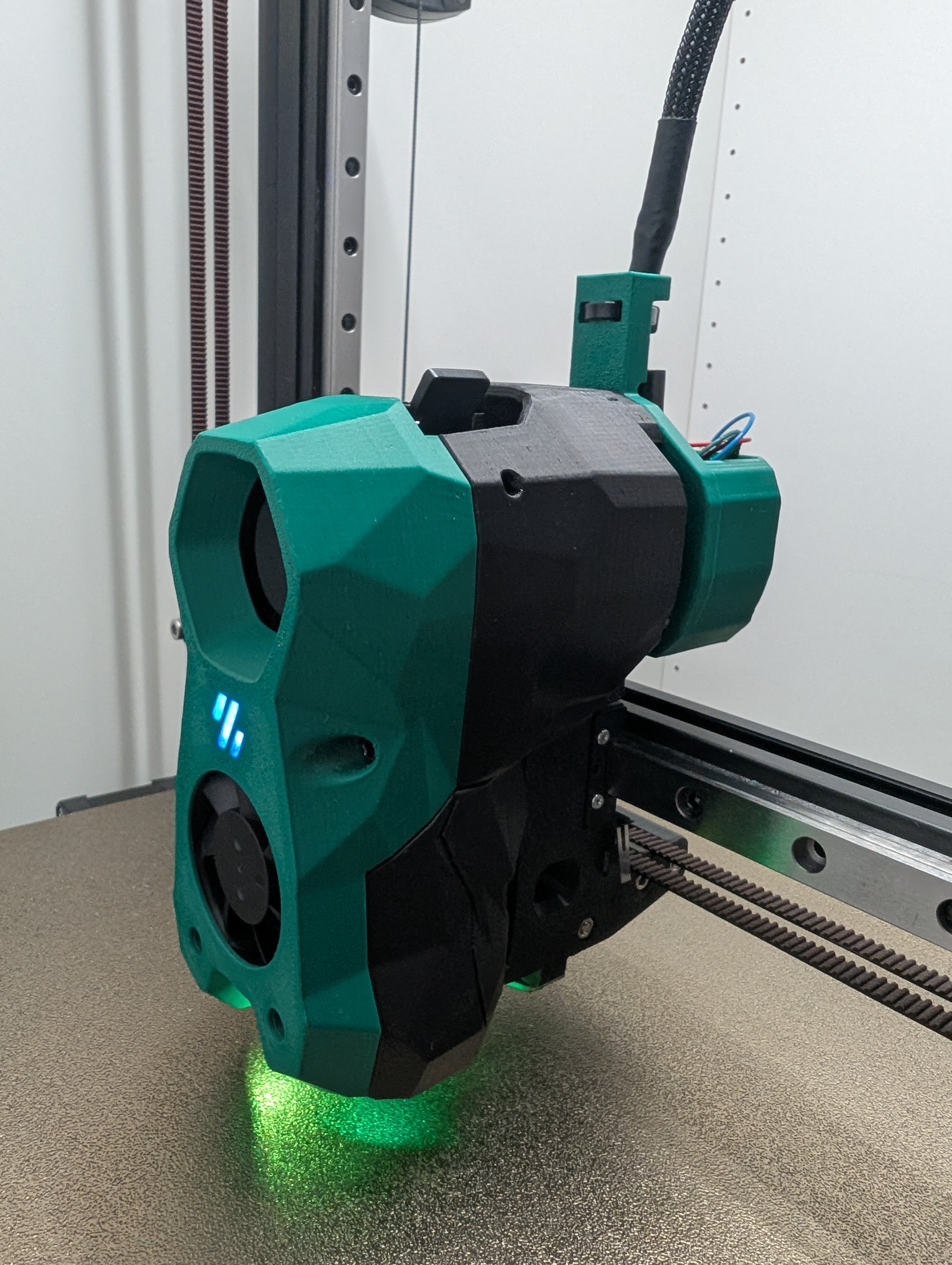 Dùng cài đặt in tiêu chuẩn của Voron (ABS hoặc ASA). Chỉ có phần thân extruder cần một ít hỗ trợ cây cho các đường dẫn cáp và một vài chỗ nhô ra nhỏ.