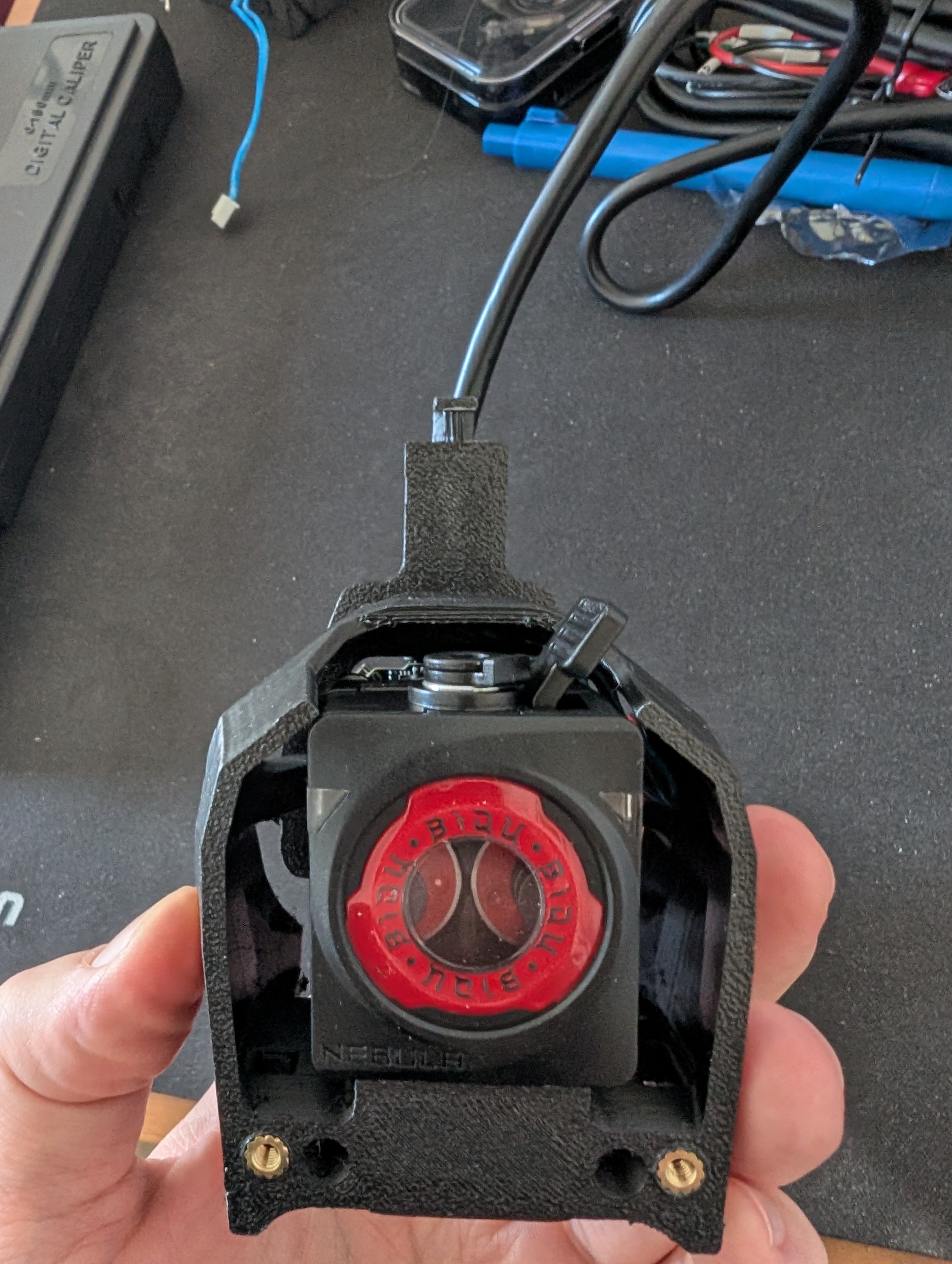 Mình có đặt một cái Biqui Nebula extruder. Mình đã chỉnh sửa lại bản Stealthburner của Biqu và bỏ đi các bộ phận Filametrix. Phần sau lưng có thể gắn được BTT EBB36 theo thiết kế của hãng (không cần ốp lưng hay miếng đệm). Tiếc là các lỗ cấy nhiệt (heatsets) sẽ làm hỏng vách ngoài của bạn, vì Biqu thiết kế chúng quá sát với vách ngoài.
