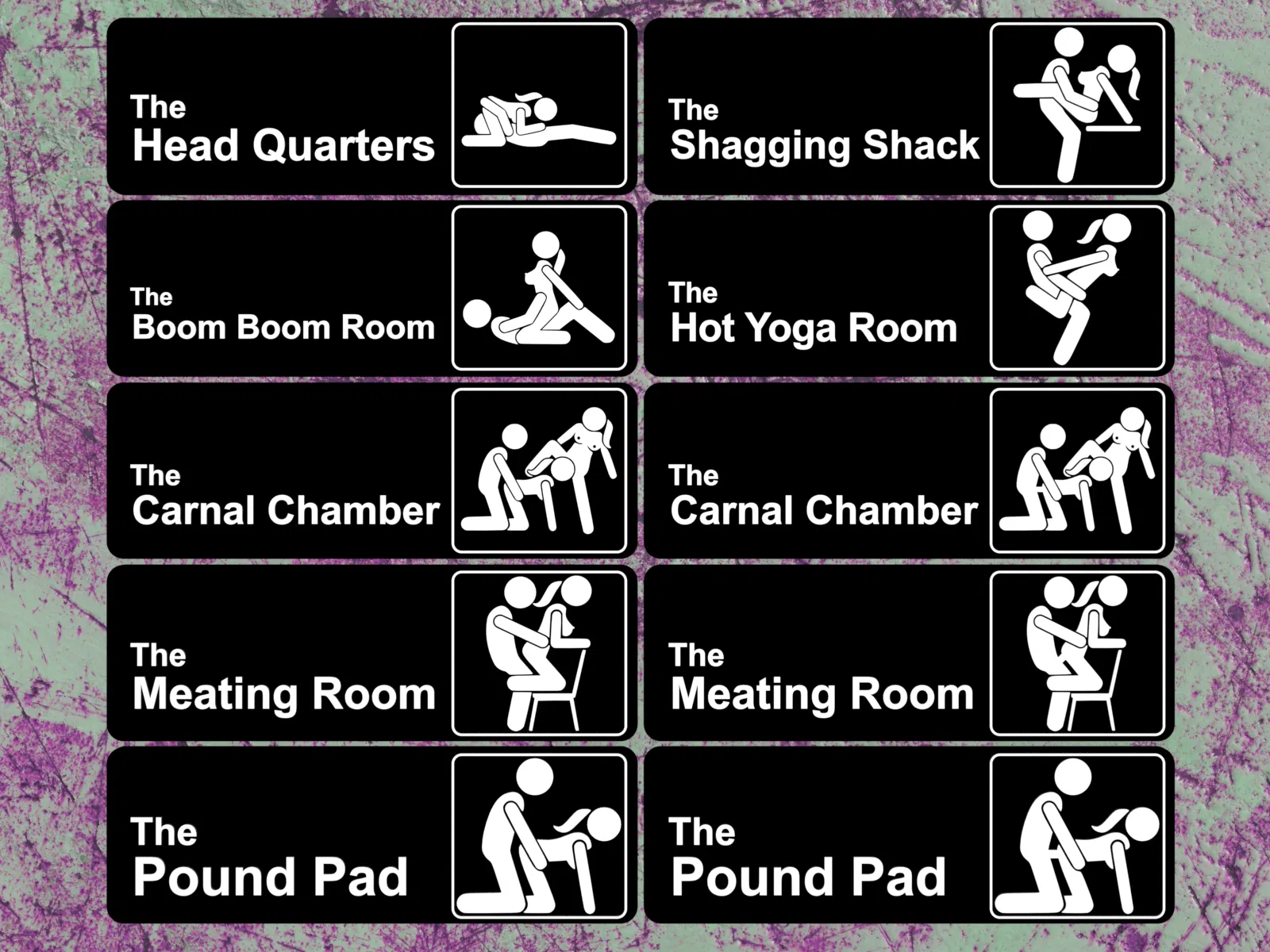 Đây là bộ sưu tập biển phòng NSFW, lấy cảm hứng từ logo "The Office" với các hành vi nhạy cảm. Bao gồm 7 biển R-rated và 3 biển X-rated, cùng các pictogram để bạn tự tùy chỉnh.