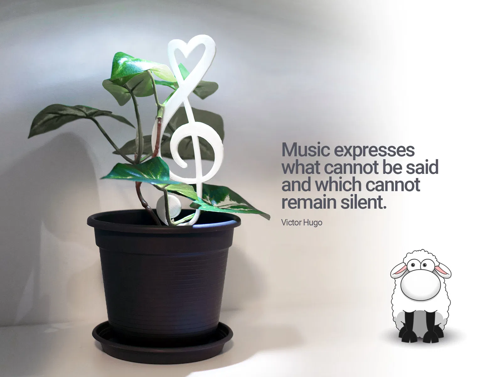 Giá Treo Cây "Tôi Yêu Âm Nhạc" cao 180 mm. Người ta nói cây cối phản ứng với âm nhạc, chúng thậm chí còn phát triển nhanh hơn khi nghe nhạc. Bạn có thể in mà không cần supports, và nếu dùng cho vườn hoặc chậu hoa, bạn nên dùng vật liệu ABS hoặc PET-G.