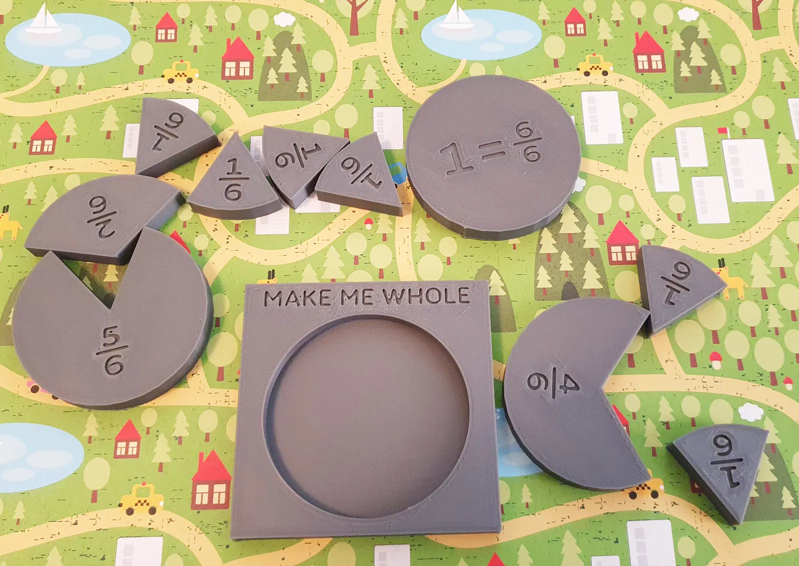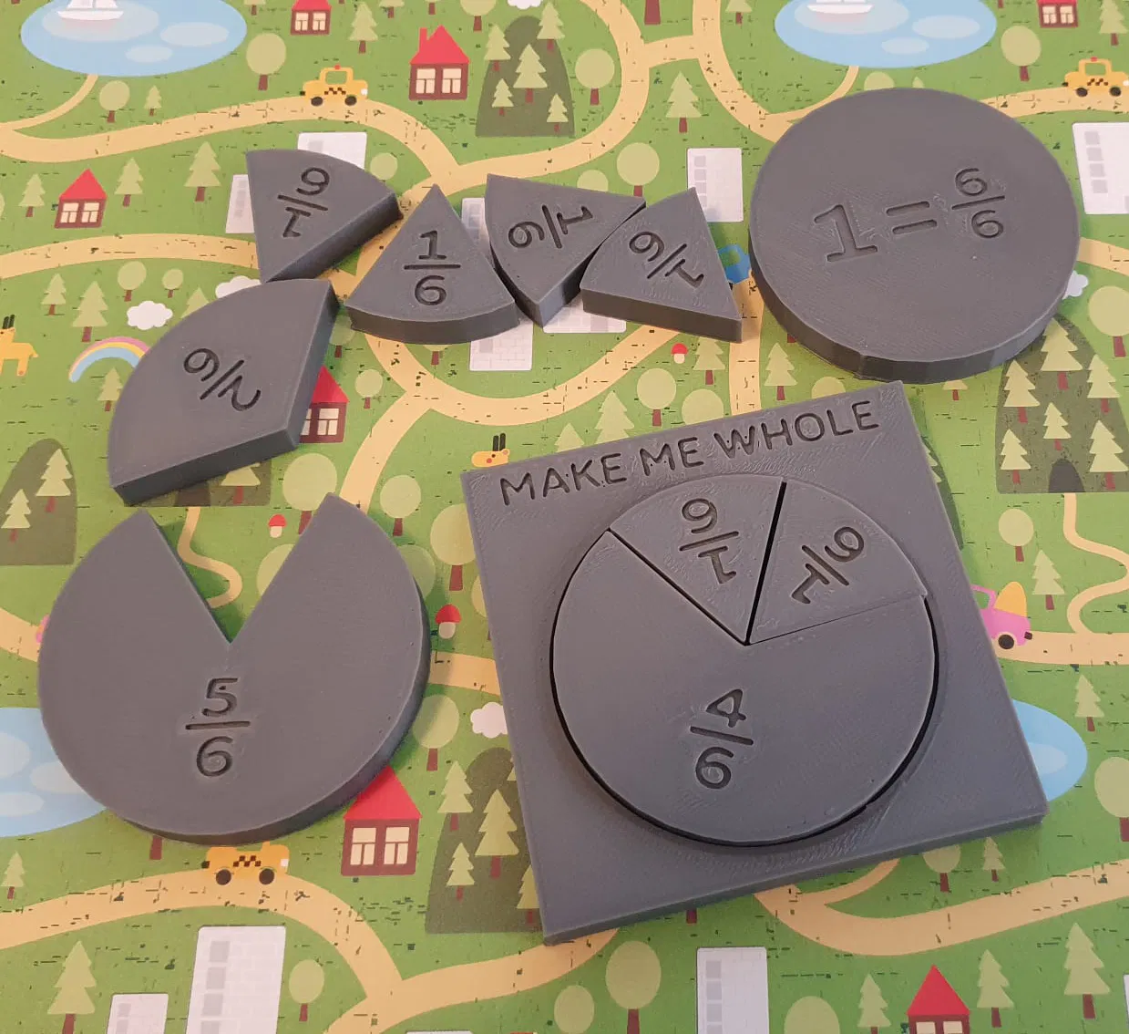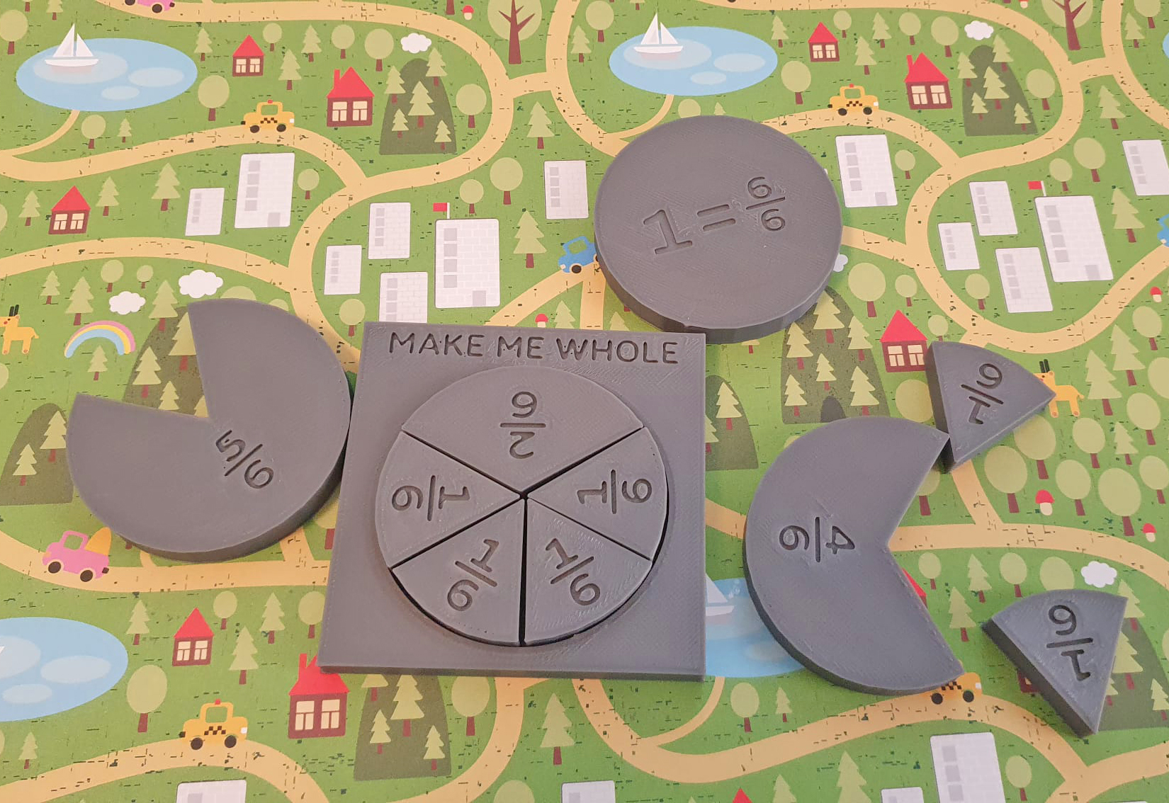Dụng cụ dạy học trực quan về phân số cho trẻ em, với các biểu đồ hình quạt và 3 cấp độ khó. Mô hình có 3 bảng với kích thước 220x220, phù hợp cho Anycubic Kobra 2 Neo. Không cần support, dùng infill 15%. Mở file trong PrusaSlicer để có kết quả tốt nhất.