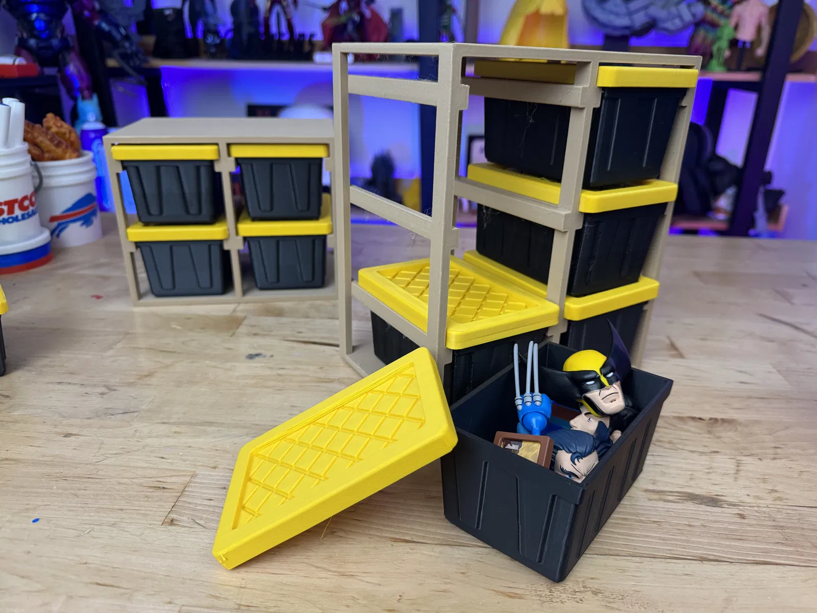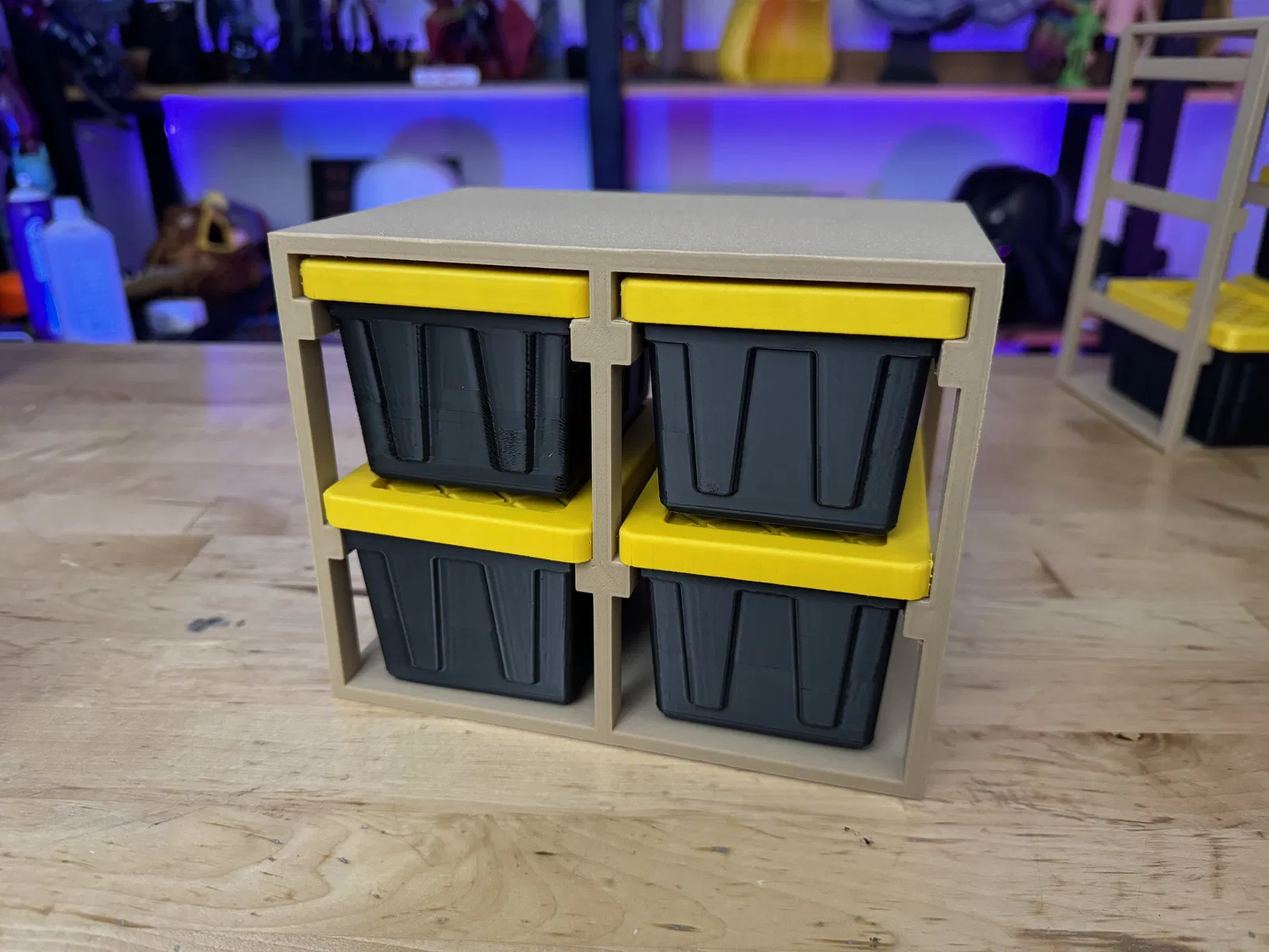 Đây là các file để in giá đỡ bằng gỗ cho các Hộp Teeny Tote của Lowes, hay còn gọi là Hộp Teeny Tote in 3D của @MelissaDay https://makerworld.com/en/models/1721852-mini-hdx-tote-bins-and-storage-rack#profileId-1899549