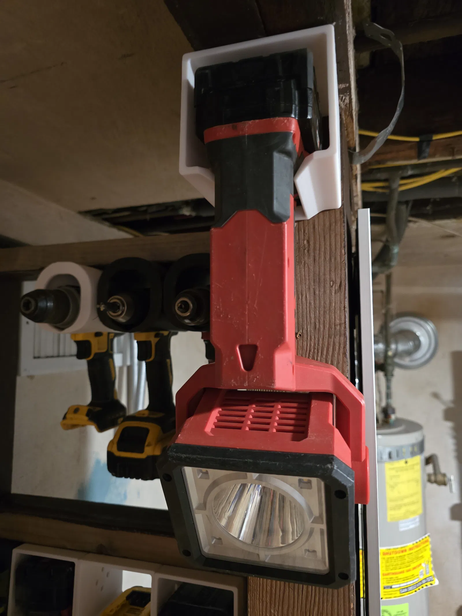 Thiết kế để treo "phần mông" của máy vô trước nha, như mấy tấm hình tui chụp đó. Nếu lần đầu gắn vô mà bị kẹt thì thử xoay ngược lại, cái độ côn của nó có thể hơi khác nhau. Ví dụ cái đèn pin bự chảng hiệu Milwaukee tui để trong hình thì chỉ có thể gắn theo chiều như trong hình thôi.