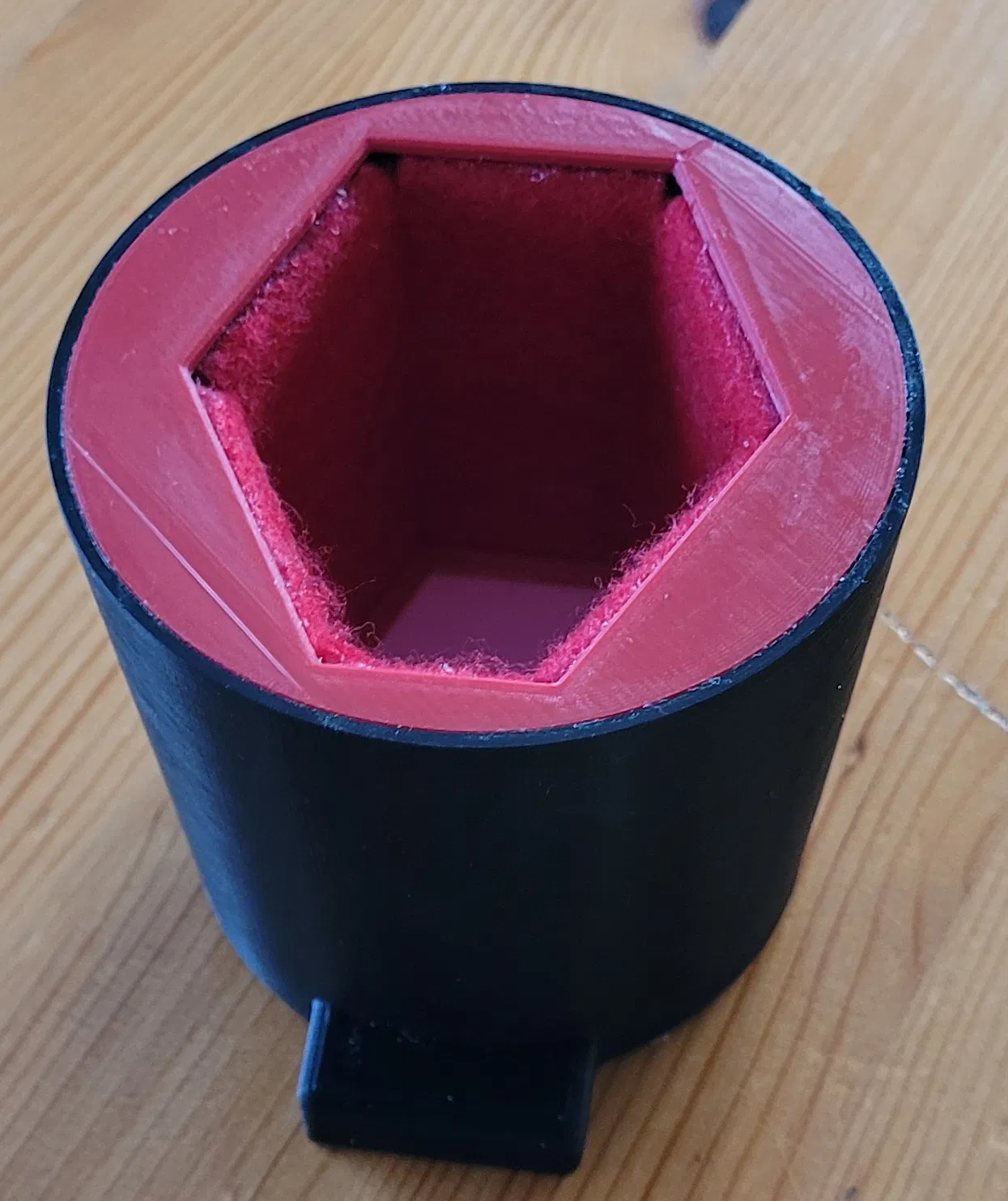 Cần một cái đế giữ vape (triade) đứng yên khi chạy xe? Đế này được lót mút xốp, có miếng chèn cố định đáy và nắp giữ mút trên. Nên dùng ASA hoặc ASB vì nó chịu nhiệt tốt hơn PLA.