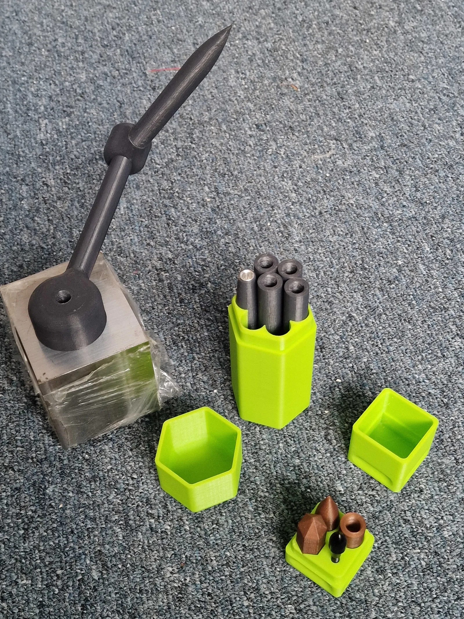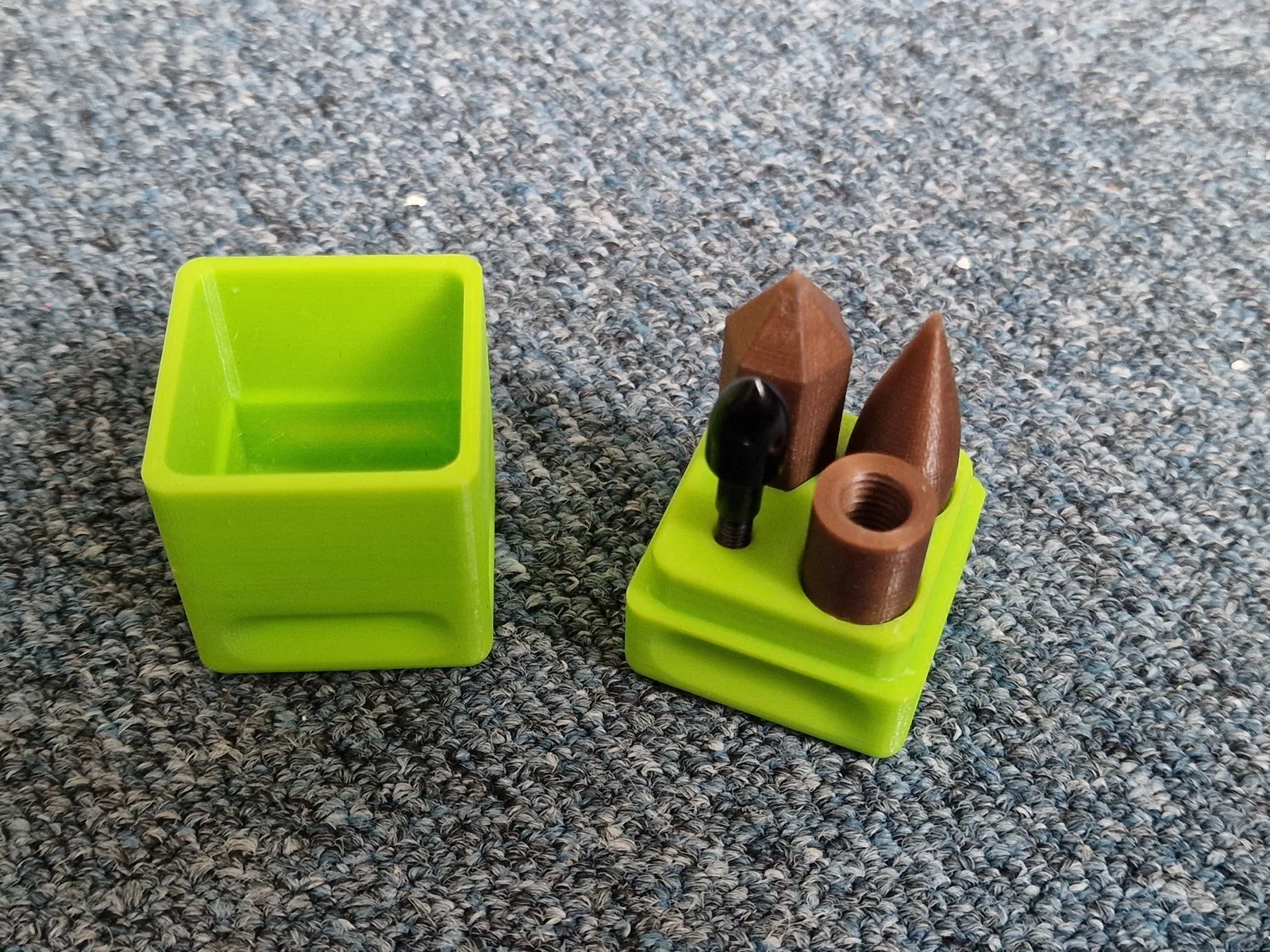 Dụng cụ đơn giản để đo TCP và Base trên robot. Định vị bằng nam châm. Nhờ nam châm mạnh và nhựa nhẹ, không bị xê dịch khi chạm vào. Mỗi phụ kiện đều có lỗ vặn vít, phòng trường hợp ren trong đế bị gãy. Có nắp đậy cho các đế để vận chuyển, bảo vệ khỏi ảnh hưởng của nam châm lên các thiết bị khác.