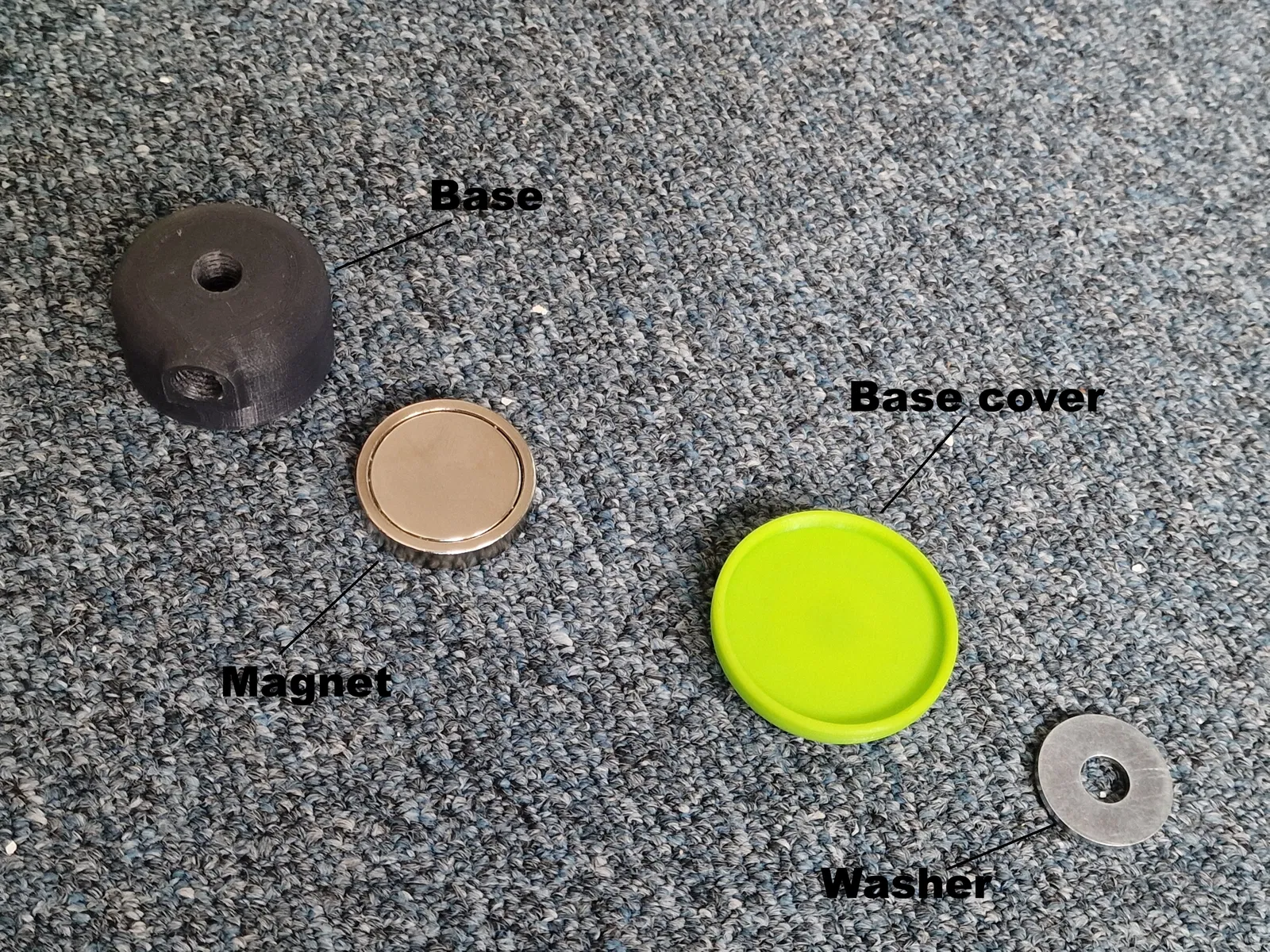Đây là dụng cụ đơn giản để đo TCP và Base trên robot, dùng nam châm để định vị. Nhờ nam châm mạnh và nhựa nhẹ, dụng cụ không bị xê dịch khi chạm vào. Thiết kế có lỗ vặn vít dự phòng và nắp đậy bảo vệ.