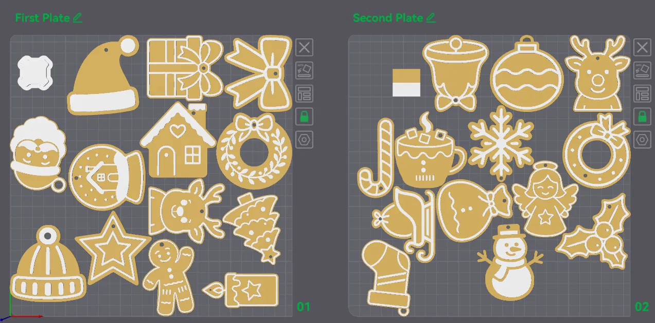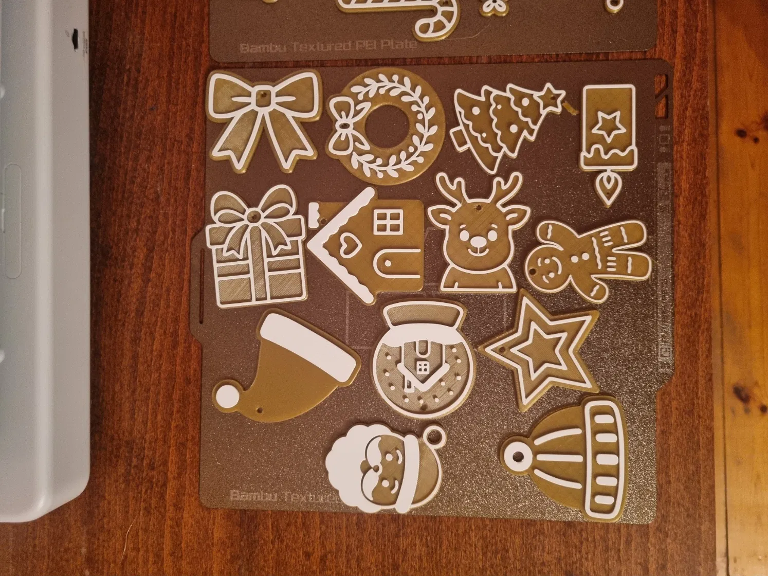 Một bộ sưu tập đồ trang trí theo phong cách bánh quy gừng ấm cúng và đầy không khí lễ hội — hoàn hảo cho đồ trang trí Giáng sinh hoặc các bản in 3D theo chủ đề ngày lễ! Bộ sưu tập bao gồm các biểu tượng mùa đông cổ điển như Ông già Noel, người tuyết, tuần lộc, thiên thần, găng tay, mũ, ngôi sao, vòng nguyệt quế, hộp quà, ngôi nhà, v.v. — tất cả đều theo phong cách bánh quy dễ thương, phủ sương.