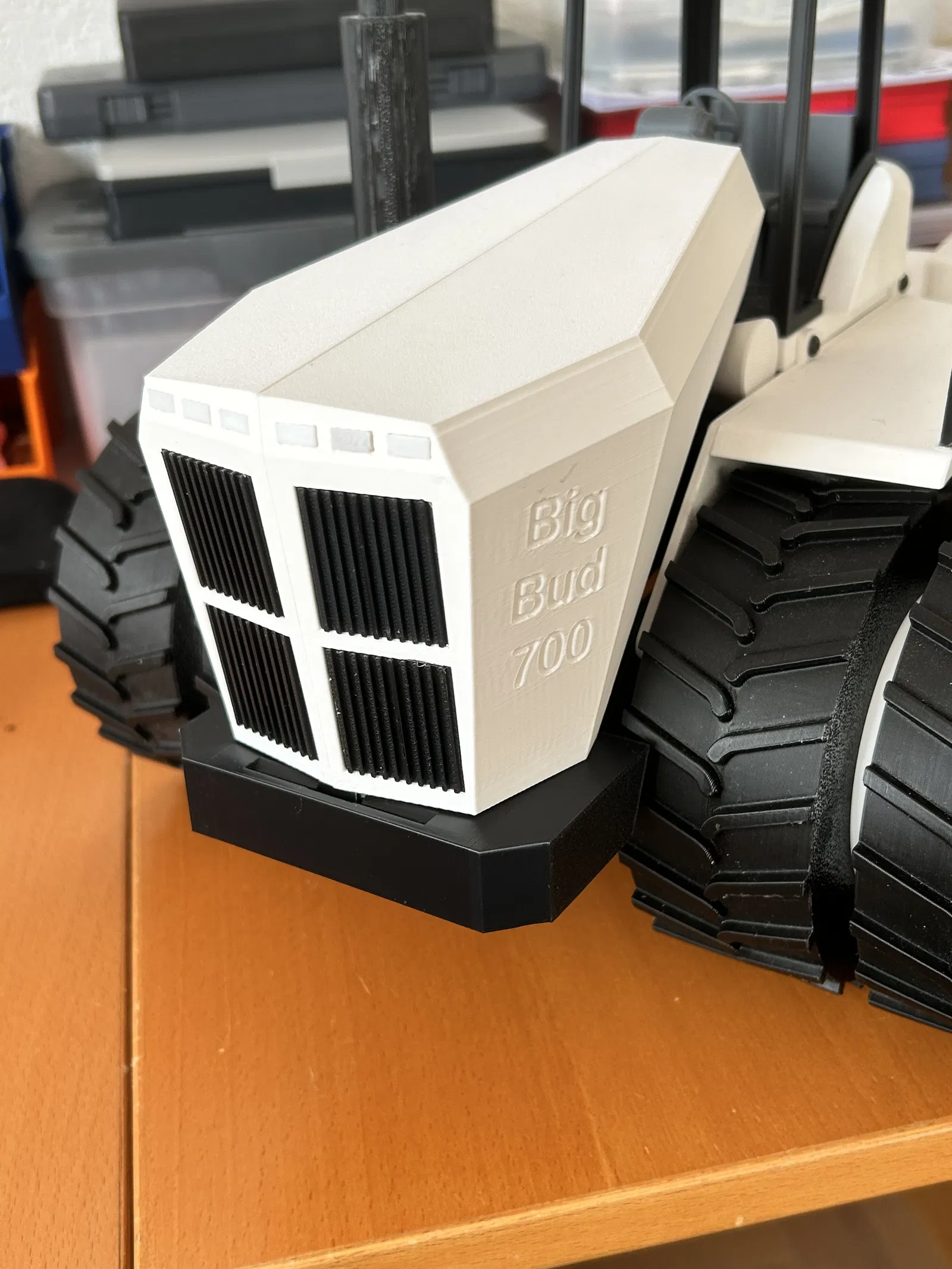 Mô hình máy cày Big Bud 700, được lắp ráp từ năm 2023-2024 theo tỷ lệ 1:16. Tui đã dùng hình ảnh và video trên mạng để thiết kế, lấy cảm hứng từ Big Bud 600/50 tỷ lệ 1/32. Cân nặng 2.3kg, in khoảng 100 giờ. Các bộ phận được đóng gói trong file ZIP, riêng các bộ phận mới/sửa đổi cần tải riêng.