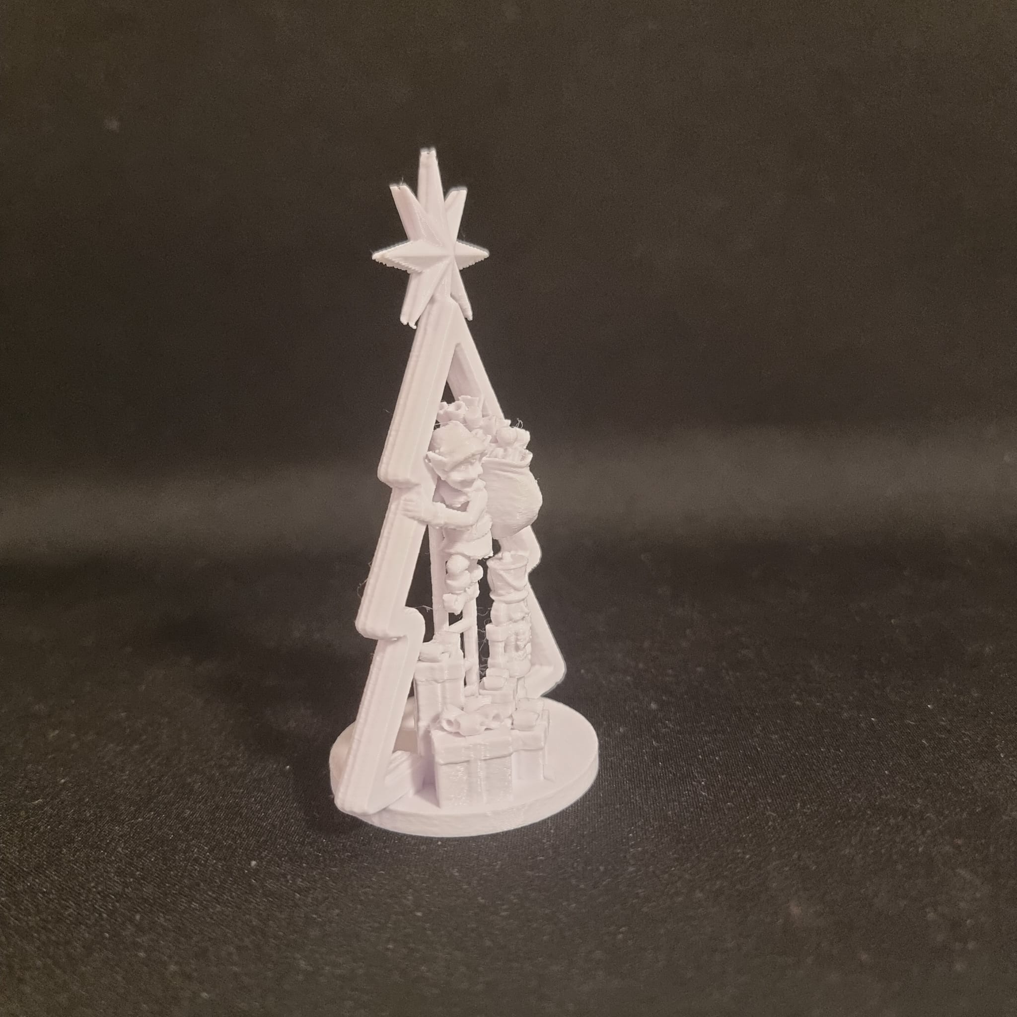 Đồ trang trí hình cây thông Noel cách điệu, có đế vững chắc và ngôi sao nổi bật. Là sự kết hợp giữa truyền thống ngày lễ và sự kỳ diệu của ông già Noel, mang đến khung cảnh nhộn nhịp từ Bắc Cực vào nhà bạn, là điểm nhấn hoàn hảo cho cây thông Giáng sinh hay không gian lễ hội.