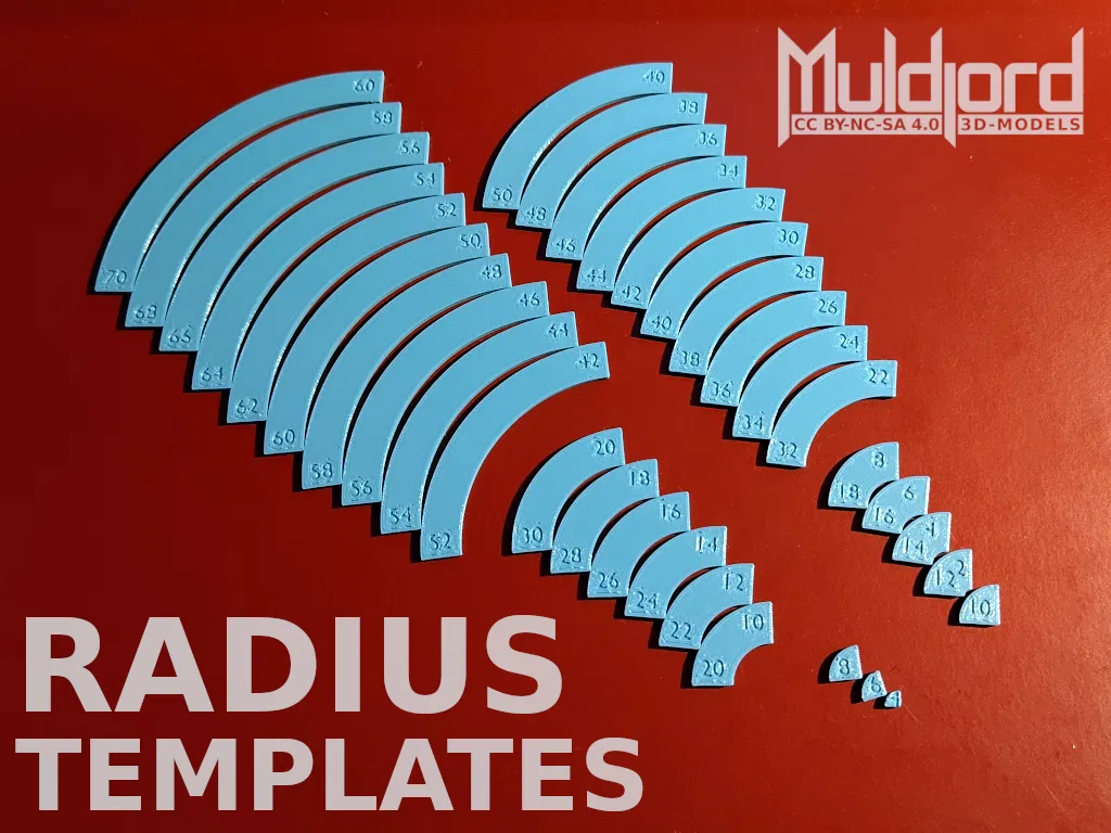 Bộ khuôn vẽ bán kính dùng để đo bán kính của các vật thể khác nhau. Các khuôn có cả bán kính trong và bán kính ngoài. Có khoảng cách 2 milimét giữa các khuôn.