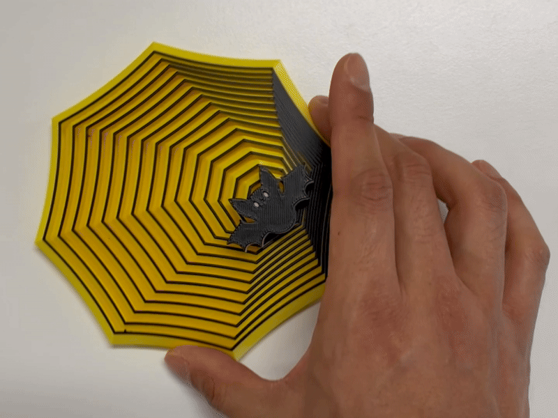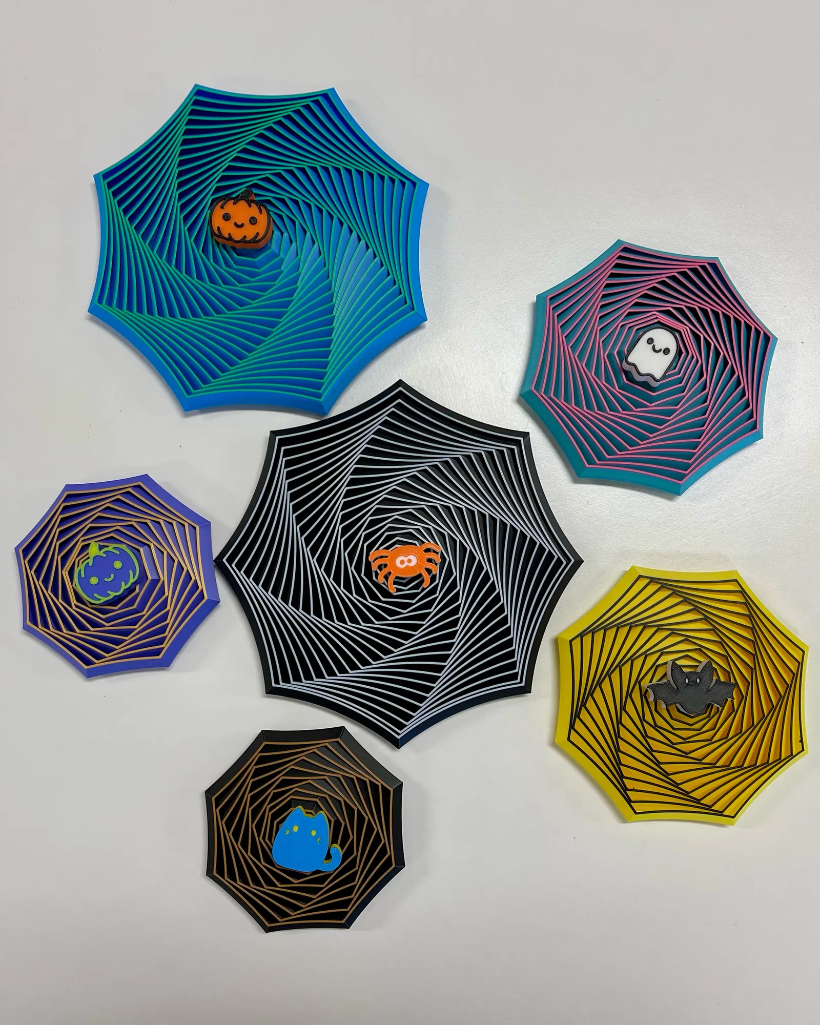 Lấy cảm hứng từ "Expanded Sensory Fidget Star", món này được làm lại ý tưởng thành một mạng nhện sắc sảo cho dịp Halloween. Có 3 kích cỡ: Lớn, Vừa và Nhỏ, kèm theo một biểu tượng có thể tháo rời ở trên. Cái biểu tượng này không chỉ để cho đẹp đâu nha; mô hình được thiết kế để bạn có thể nhấc nó lên bằng biểu tượng, cảm giác cầm nắm đã lắm luôn.