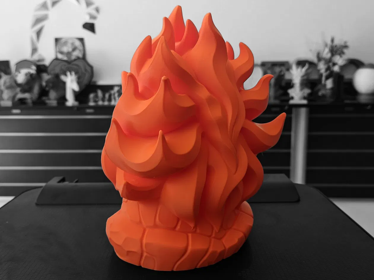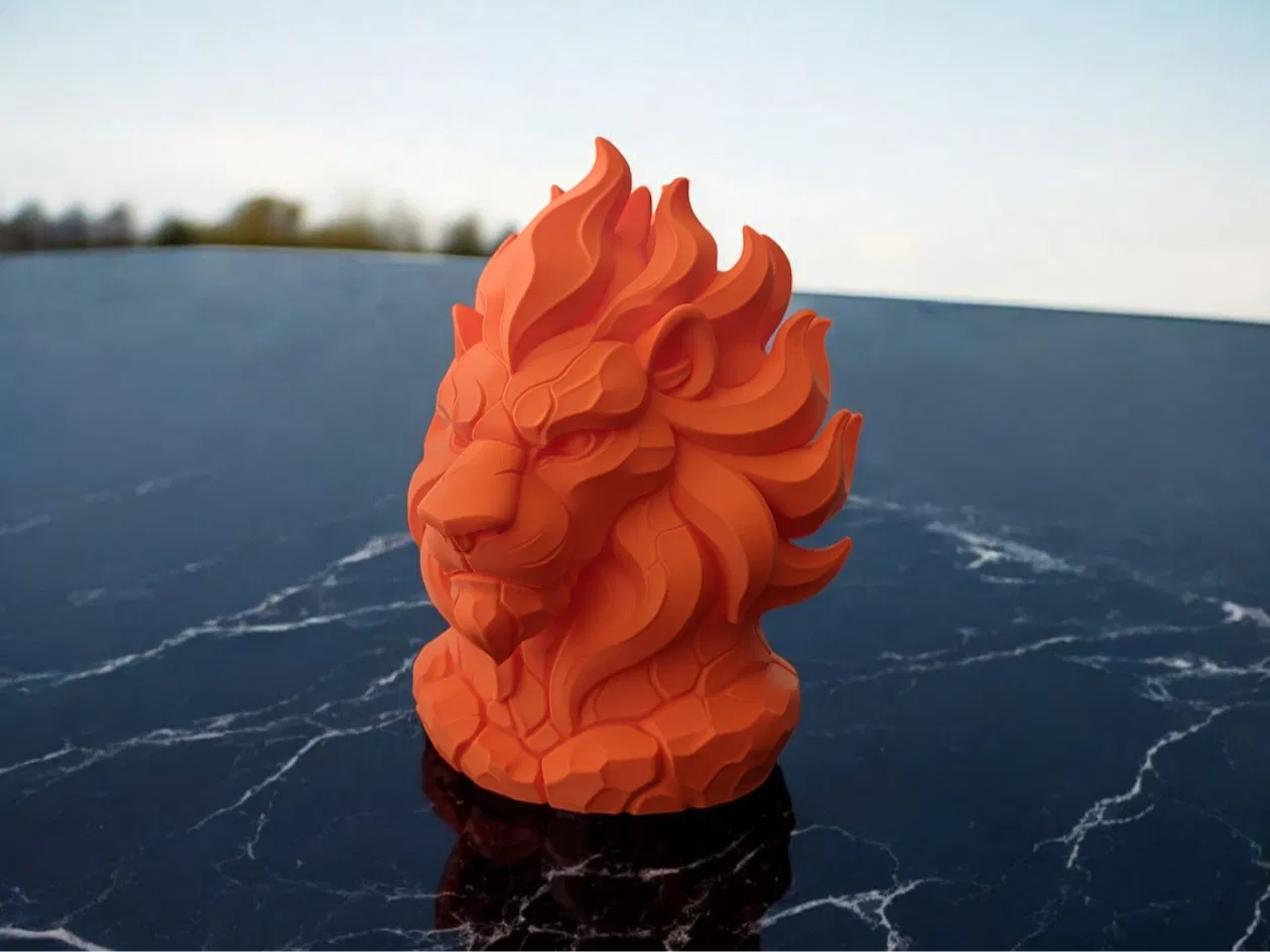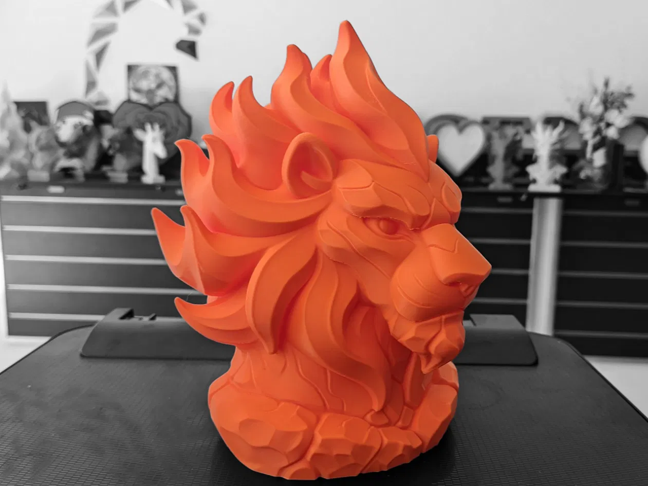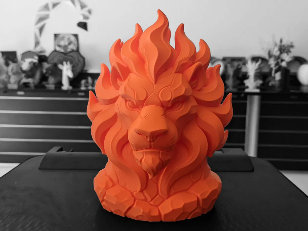 - Bờm Lửa Cách Điệu – Bờm tóc uốn lượn như ngọn lửa được điêu khắc, tạo thành những đường cong rắn chắc, dễ in mà không có bộ phận mỏng manh, dễ gãy.