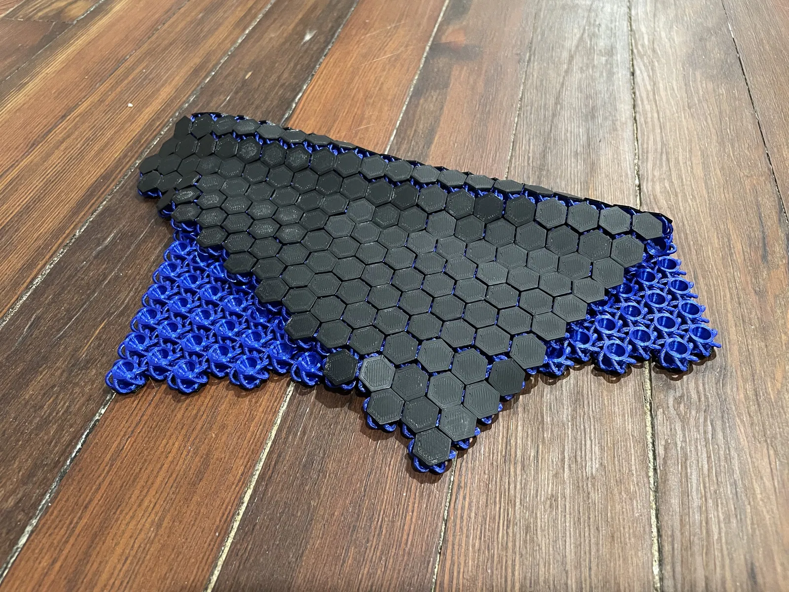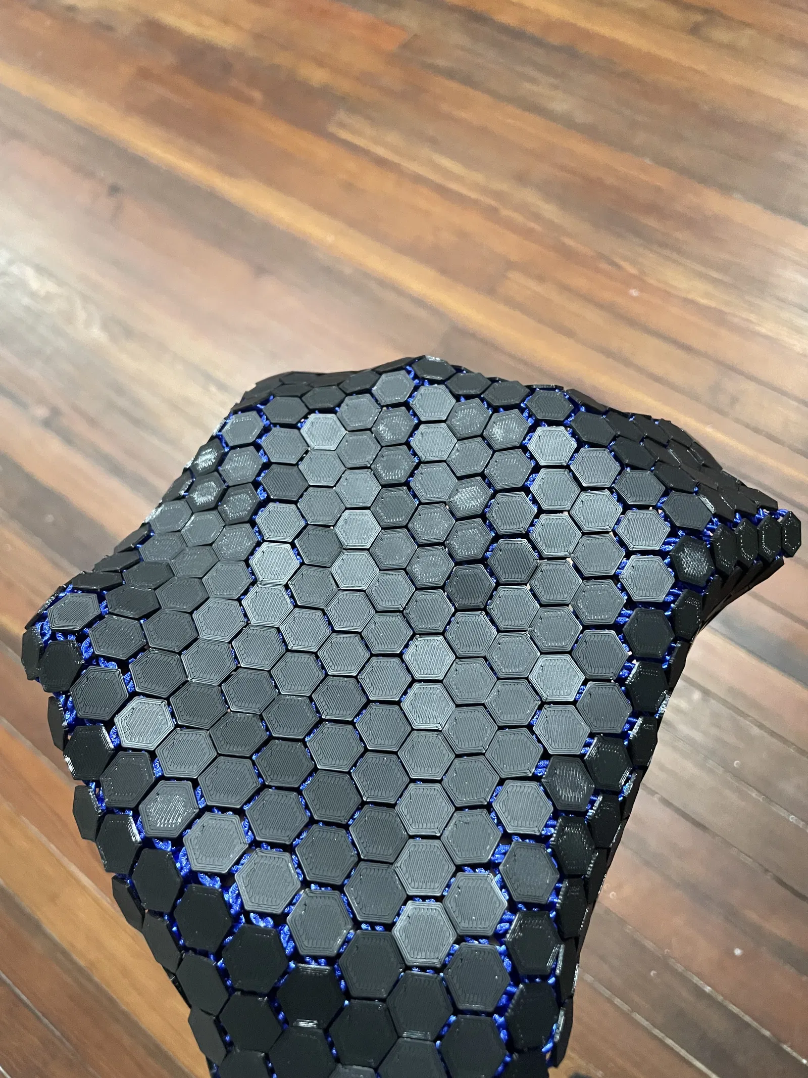 Mô hình này là một thiết kế lại hoàn toàn của loại vải NASA Chainmail cổ điển. Loại vải linh hoạt này được làm từ các ô hình lục giác với các vòng đan xen ở mặt sau. Kết quả là một tấm nhựa cứng có thể uốn cong và gấp lại giống như một loại vải dày, cứng.