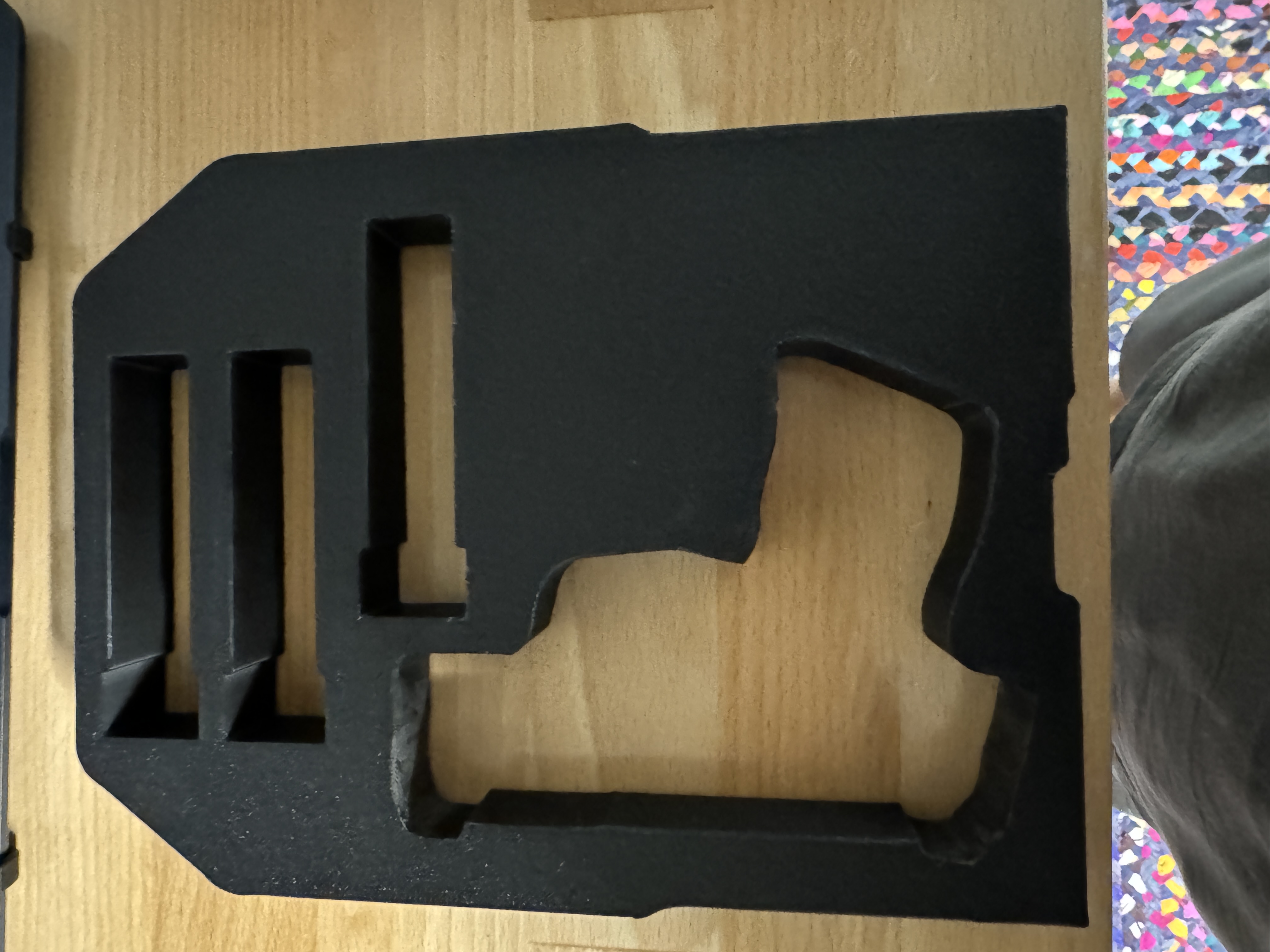 Với lại cái khe hở hoàn chỉnh cho phép dùng miếng mút mỏng zin theo súng để nhét giữa nắp và khay in, vừa bảo vệ tốt hơn vừa hạn chế rung lắc. Nhét miếng mút mỏng ở dưới đế cũng được luôn nha.