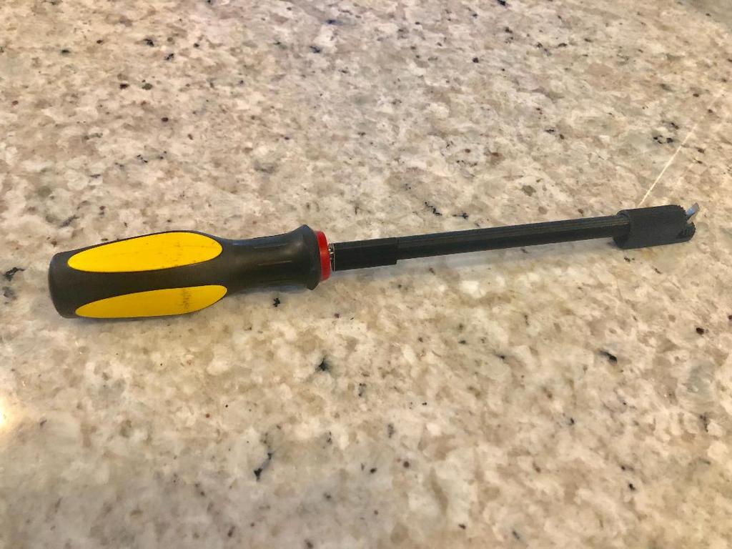 Đây là một bộ giữ mũi tua vít góc 90 độ cho các mũi tua vít 1/4 inch, được thiết kế để dễ dàng điều chỉnh ốc chỉnh xăng gió trên bộ chế hòa khí Honda Nighthawk của tui. Mấy cái bộ chế hòa khí ở giữa vẫn hơi khó chỉnh một chút nhưng dễ hơn nhiều so với dùng tua vít thường. Tui cũng có cắt bớt mũi tua vít cho ngắn lại.
