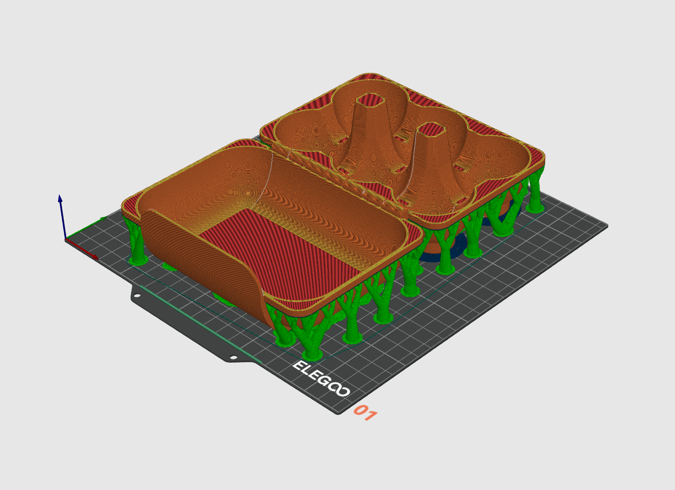 In ở độ cao lớp 0.2mm, trên máy Elegoo Neptune 4 với vòi phun 0.4mm, dùng Elegoo Rapid PLA +, cần hỗ trợ, 15% infill Grid, thời gian in ~10 tiếng.