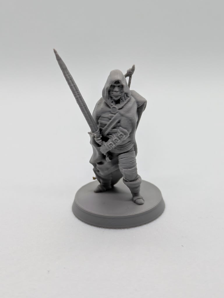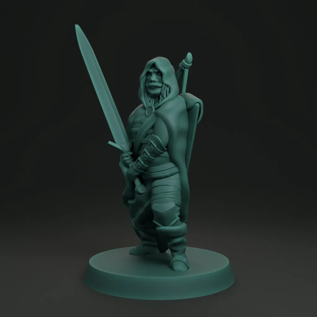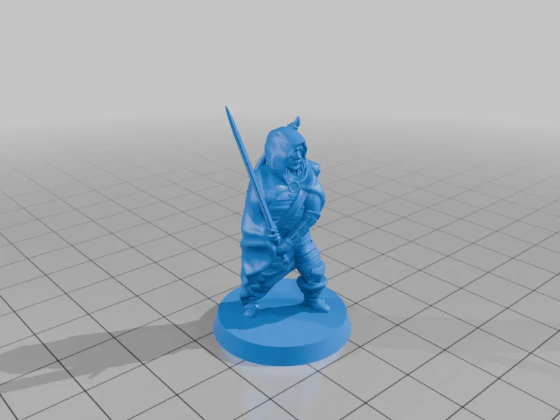 Mô hình chiến binh nhân loại, kiểu dân tộc, cầm kiếm 2 tay và cung dài. Thiết kế đặc biệt để in trên máy FDM mà không cần bất kỳ giá đỡ nào. Hoàn hảo cho các nhà sưu tập mô hình nhỏ hoặc cho game D&D. In bằng PLA với đầu phun 0.2mm và chiều cao lớp 0.8mm.