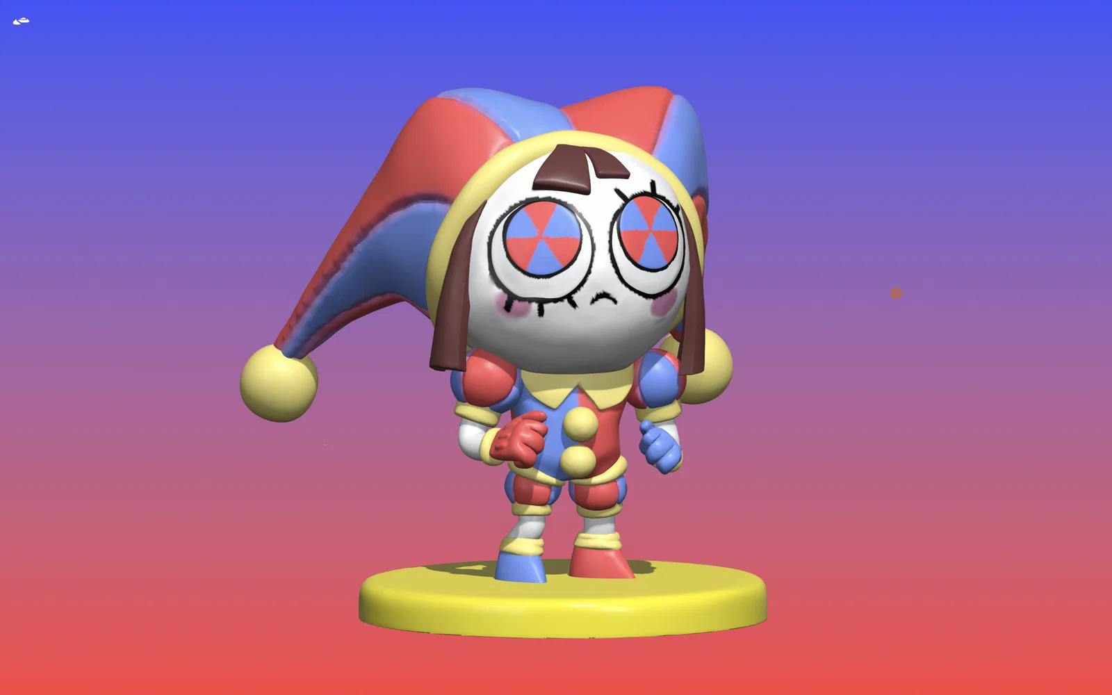 Mô hình 3D Pomni từ The Amazing Digital Circus, được điêu khắc bởi Fra3D.11. Lưu ý: người tạo mô hình không sở hữu bản quyền nhân vật gốc và khuyến khích mua hàng chính thức để ủng hộ nhà sản xuất.