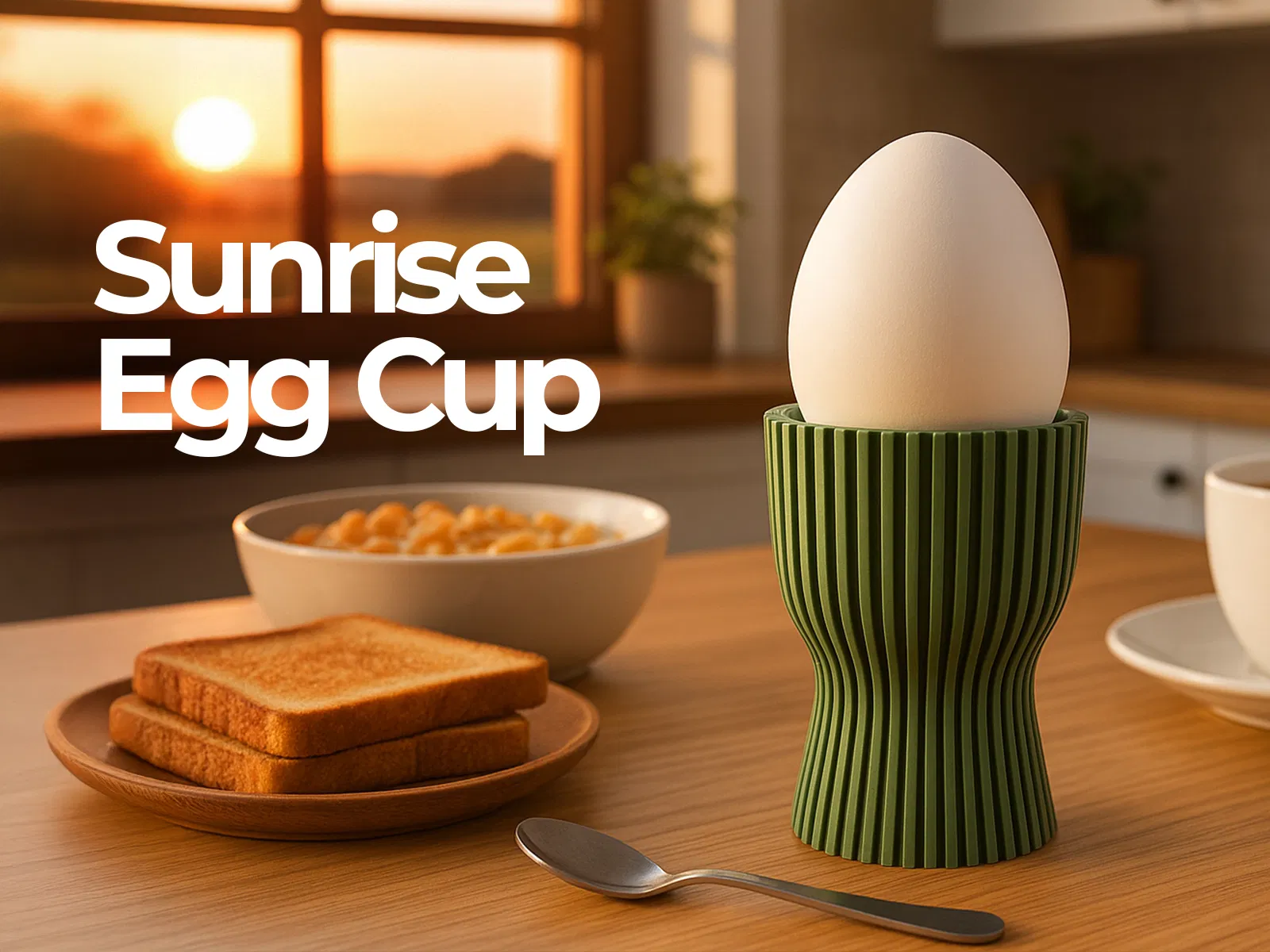 Chiếc cốc đựng trứng in 3D hiện đại lấy cảm hứng từ ánh sáng ban mai. Thiết kế có gân độc đáo giúp cầm chắc chắn, thêm nét thanh lịch cho bàn ăn sáng của bạn. Sản phẩm hoàn hảo cho người yêu thích phong cách tối giản, vẻ đẹp chức năng và sự tinh tế.