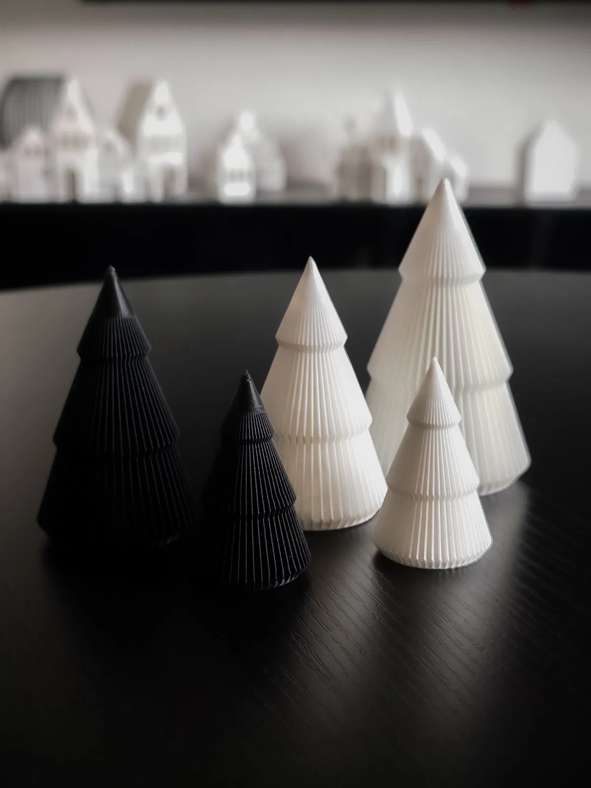 Mấy cây thông mini hiện đại này rất hợp để trang trí mùa đông, cảnh Giáng sinh, hoặc làm vật trang trí bàn ăn thật phong cách. Thiết kế đơn giản, thanh lịch và có thể tùy chỉnh kích thước dễ dàng – rất lý tưởng cho phong cách sống tối giản hoặc Bắc Âu.