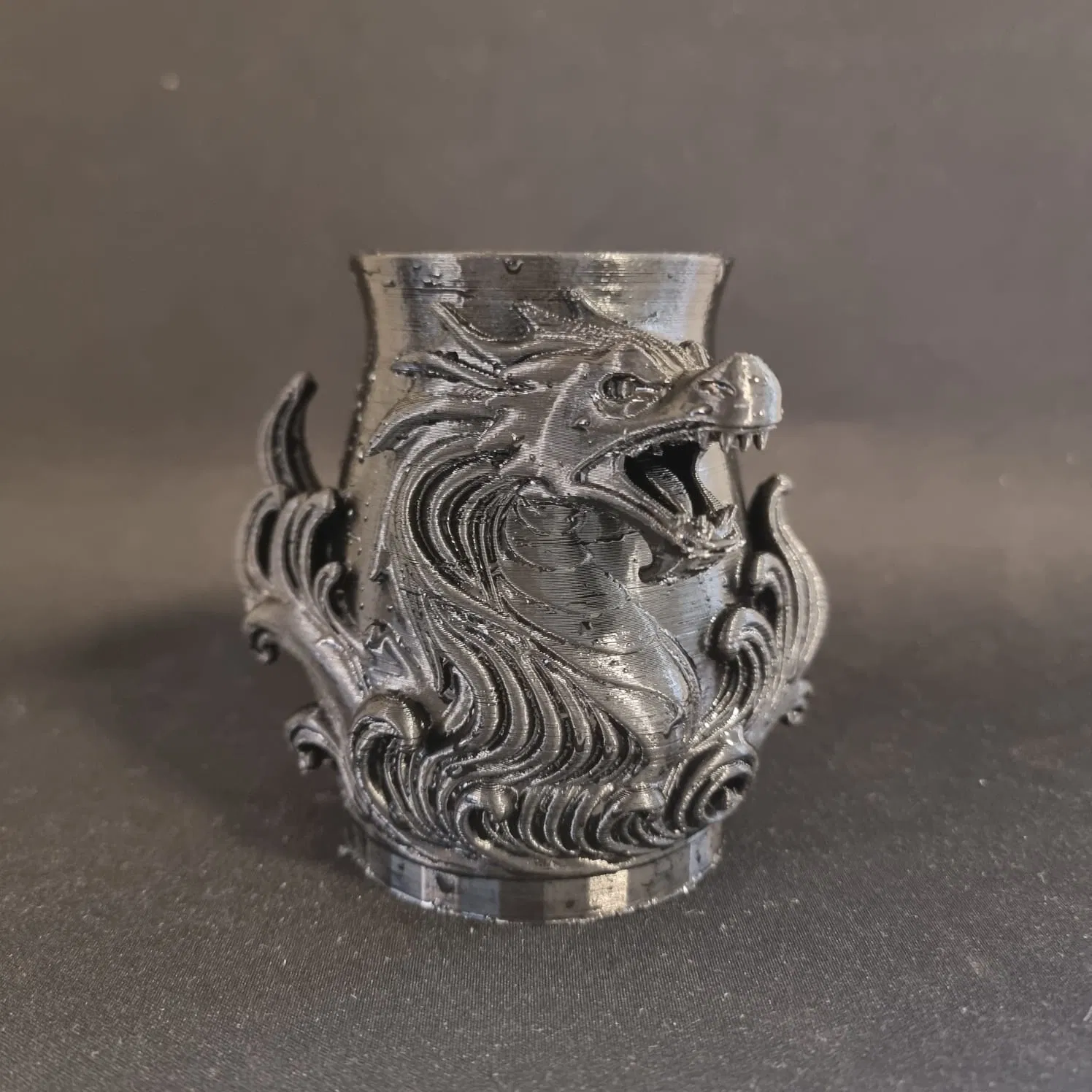 Chiếc bình rồng đen này nổi bật với thiết kế rồng ấn tượng, tinh xảo, trông như đang sống dậy từ bề mặt. Được làm từ PLA đen, nó hoàn hảo làm điểm nhấn trang trí cho ngôi nhà, thể hiện sức mạnh và nghệ thuật.