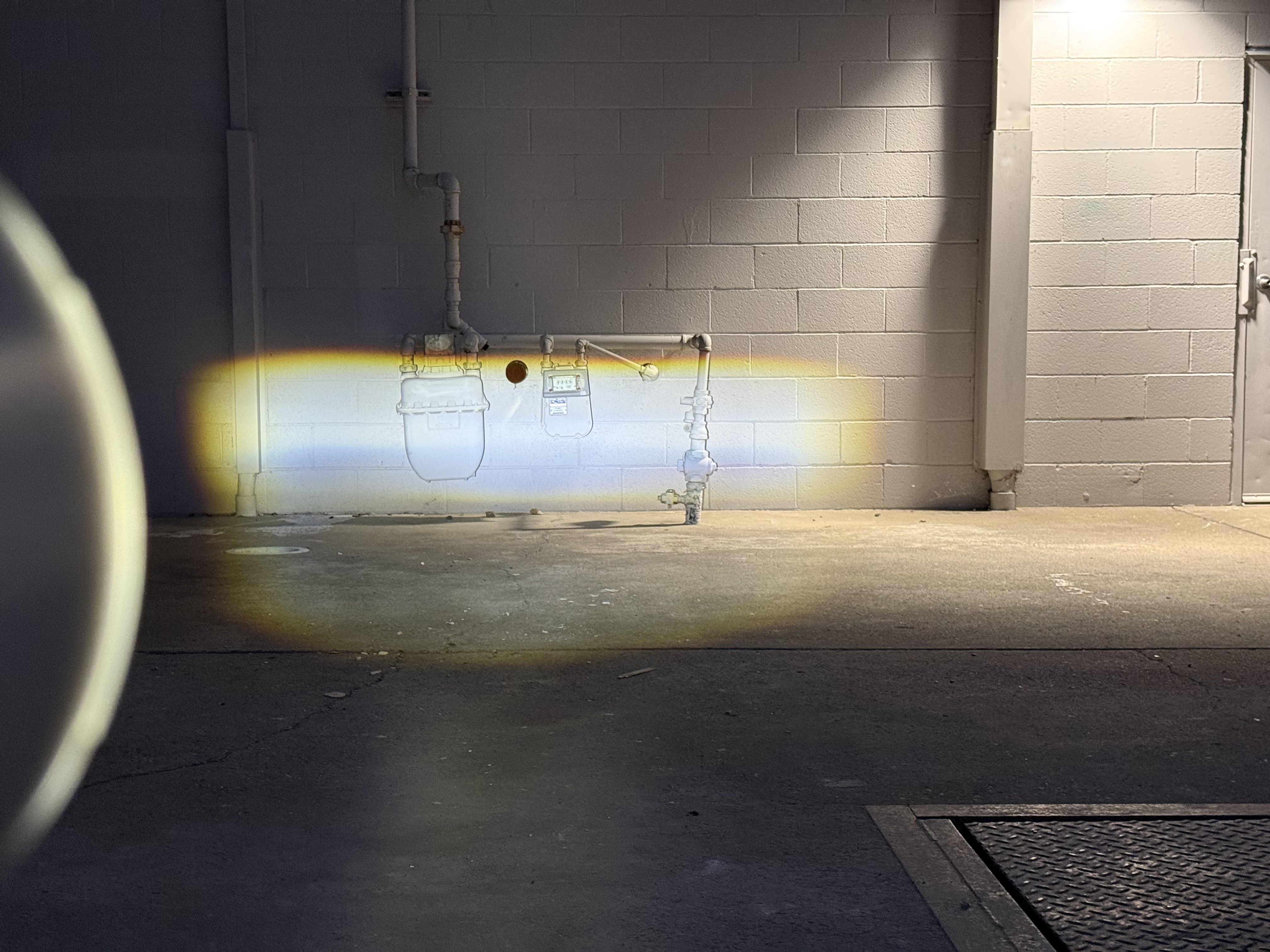 Ảnh chụp đèn chiếu lên tường cách 25' tính từ đèn tới tường. Đỉnh chùm sáng cao 30" so với mặt đất.