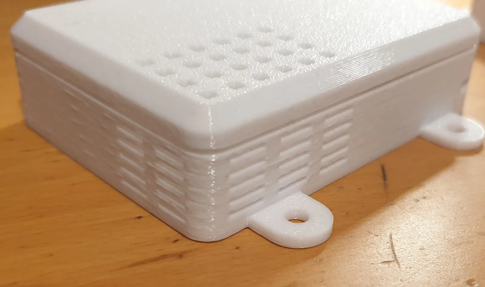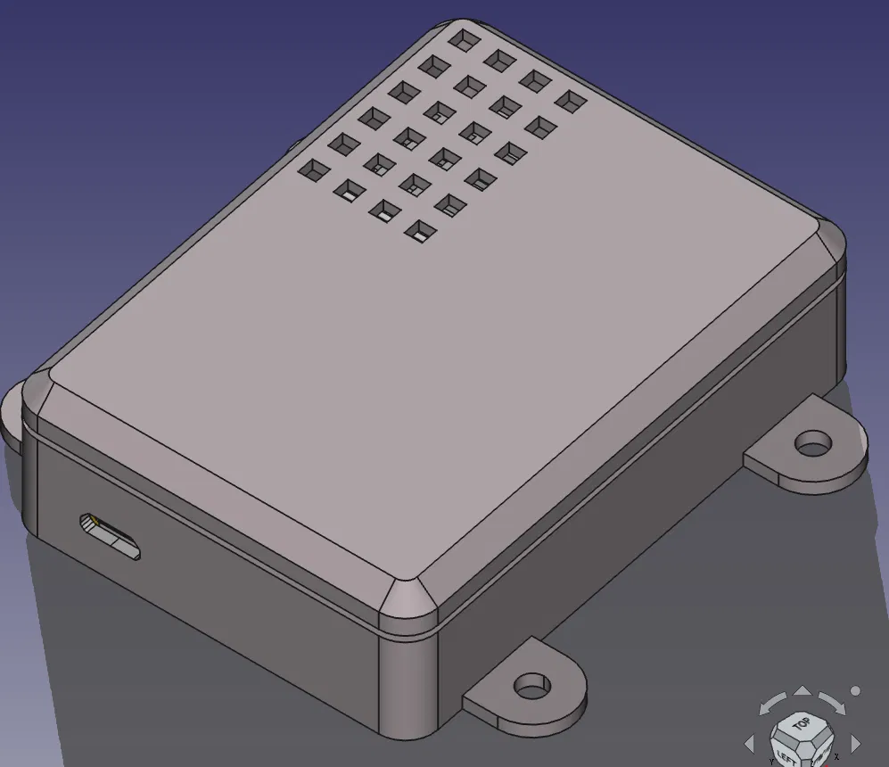 Tôi đã in nó với một lớp fuzzy skin nhỏ (0.04mm). Modifier dùng cho việc đó, chỉ có bề mặt ngoài mới được gán fuzzy skin. Bo mạch được giữ bằng ma sát. Cuối cùng tôi đặt bo mạch sạc lên trên để có thể nhìn thấy đèn LED.