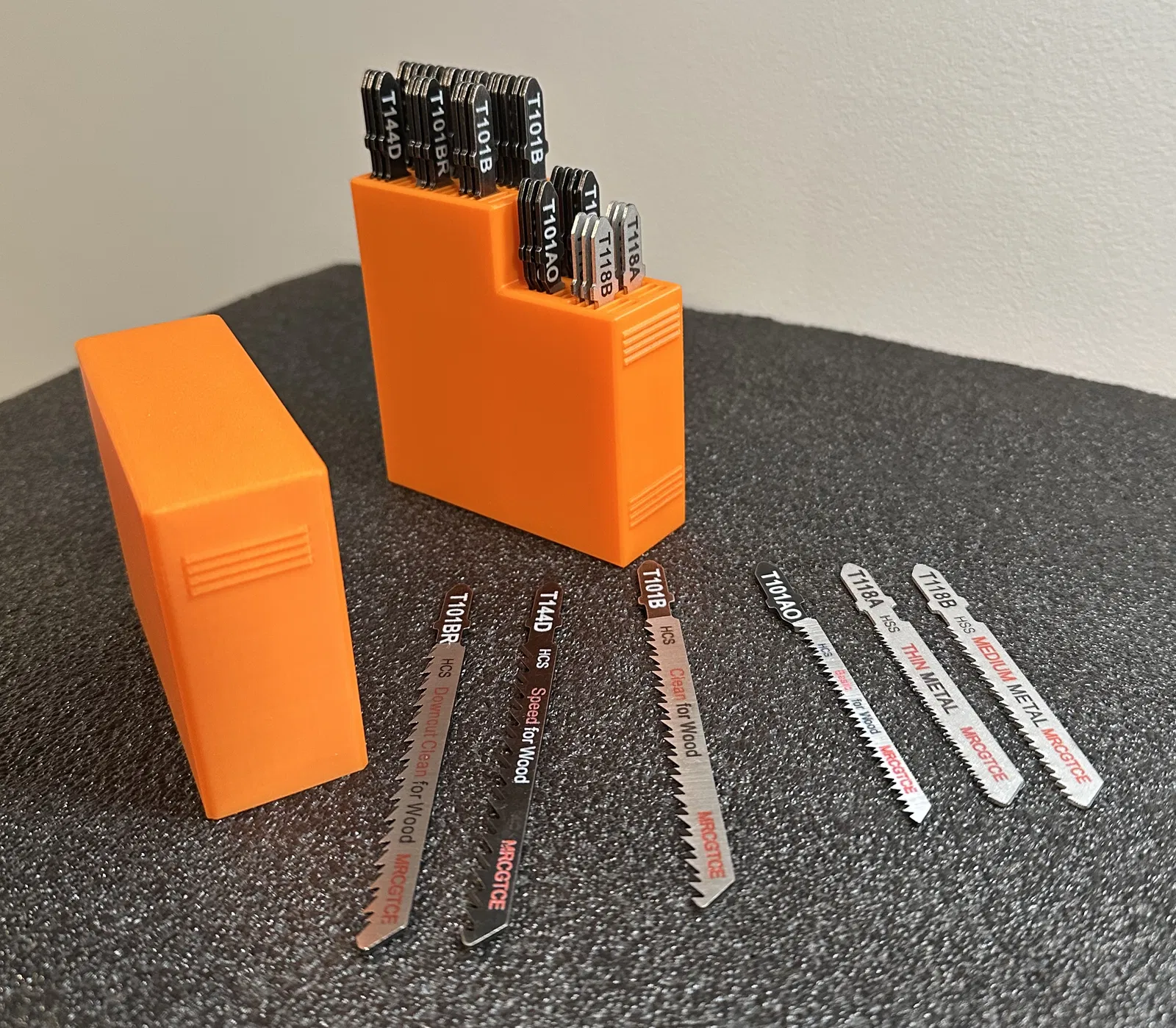 Cái hộp này được thiết kế để đựng tới 50 lưỡi cưa lọng T-shank đủ loại. Giờ đây bạn có thể dễ dàng xem và lấy lưỡi cưa mình cần mà không cần lớp bọc nhựa riêng lẻ nữa.