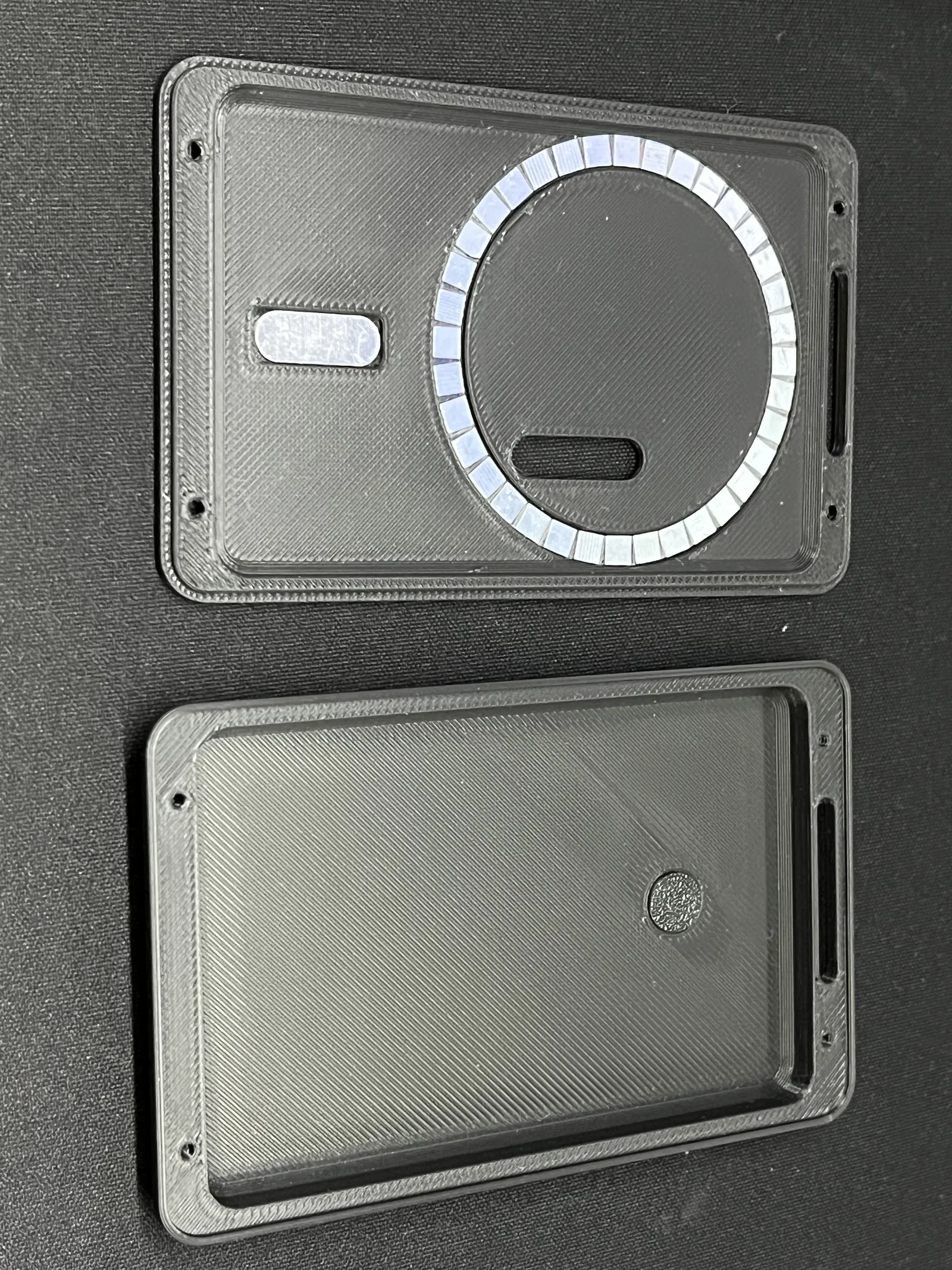 Đây là một cái vỏ bảo vệ cho Seeed SenseCAP T1000-E, giúp nó gắn vào điện thoại có hỗ trợ Magsafe. Vỏ này chỉ dày 9.5mm và vẫn cho phép truy cập nút bấm cũng như cổng sạc ở mặt sau. Ngoài ra còn có một khe cắt để treo dây đeo.