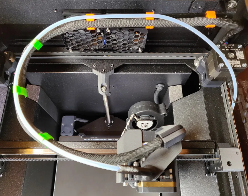 Kẹp ống cáp/PTFE Cánh Tay Lắc Prusa CORE One thay cho dây đai Velcro không đẹp mắt.