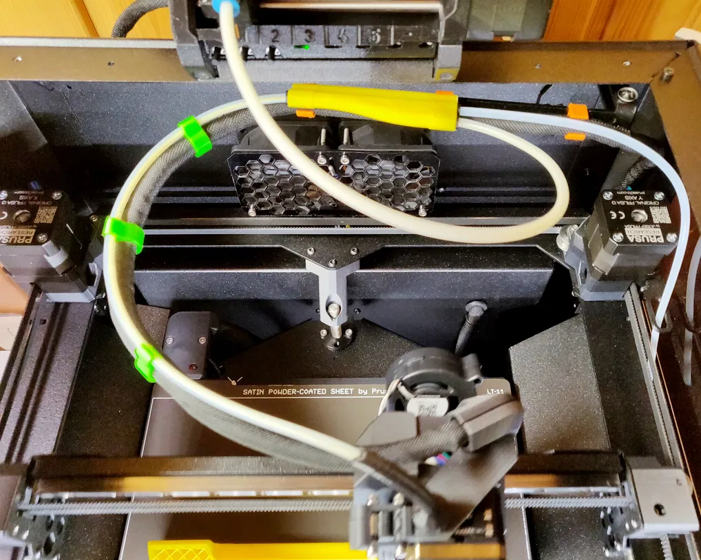 Cải tiến ngày 31 tháng 7 năm 2025: Mở rộng các ống bên trong lên 2.5mm để kéo sợi tốt hơn vào MMU3. Sử dụng đường thẳng cho ống MMU3 để hoạt động mượt mà hơn.