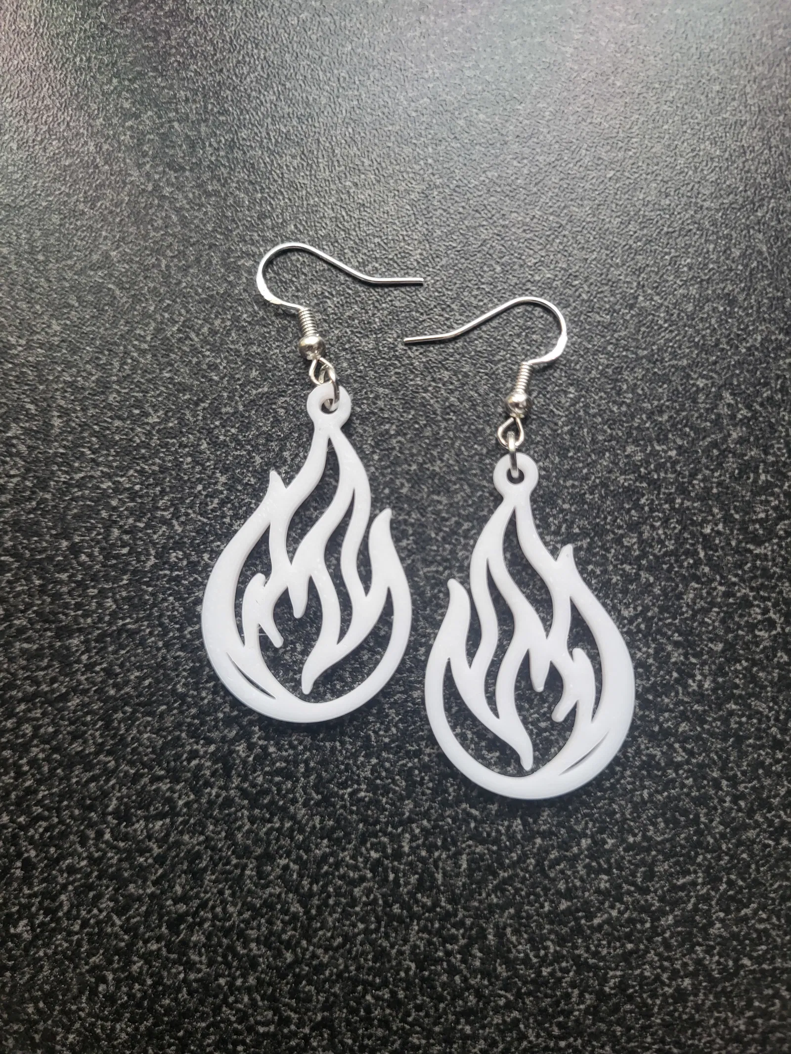 Bông Tai - 024 - Dễ In: Thiết kế lấy cảm hứng từ ngọn lửa, hoàn hảo cho phụ kiện thời trang. In bằng PLA hoặc ABS với cài đặt tối thiểu cho đường cong mịn. Lắp ráp đơn giản với khoen tròn.