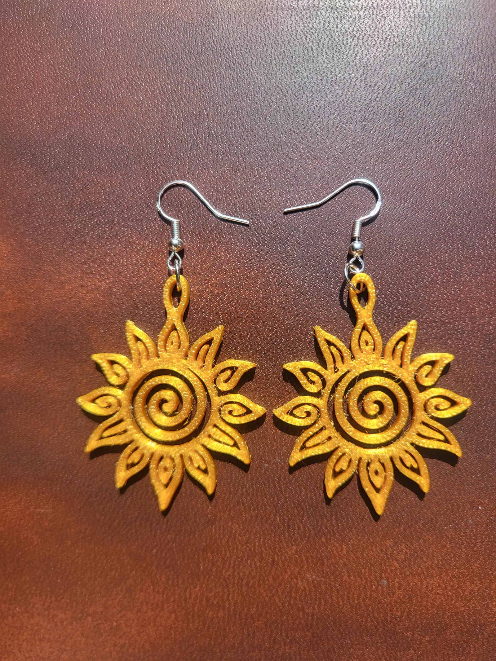Bông Tai - 022 - In Dễ Dàng: Thiết kế lấy cảm hứng từ mặt trời, mang nét nghệ thuật và năng lượng. Lý tưởng cho trang phục thường ngày hoặc tiệc tùng. Gợi ý in với PLA vàng, lớp cao 0.16mm. Không cần lắp ráp, sẵn sàng đeo sau in. Chia sẻ sản phẩm bạn in nhé!