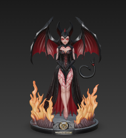 Nữ Hoàng Địa Ngục (Infernal Queen) STL: Mô hình demon girl fantasy tăm tối với cánh, sừng, trang phục gothic và đế lửa. Tối ưu cho in resin, phù hợp làm tượng sưu tầm, mẫu vẽ hay diorama. Hoàn hảo cho nghệ sĩ và người yêu thích fantasy.