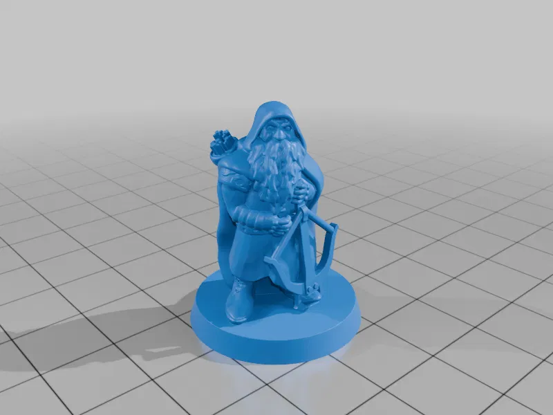 Mô hình người lùn thợ săn trang bị nỏ. Được thiết kế để in không cần support trên máy in FDM. Tui dùng nozzle 0,2 và độ dày lớp in 0,8 mm.