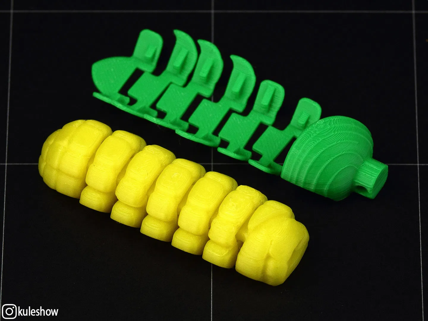 Móc khóa ngô dẻo có thể uốn cong, không cần in hỗ trợ hay AMS. Hoàn hảo để làm đồ chơi, trang trí màu vàng. Nhớ dán keo khi lắp ráp và chia sẻ thành phẩm của bạn nhé!